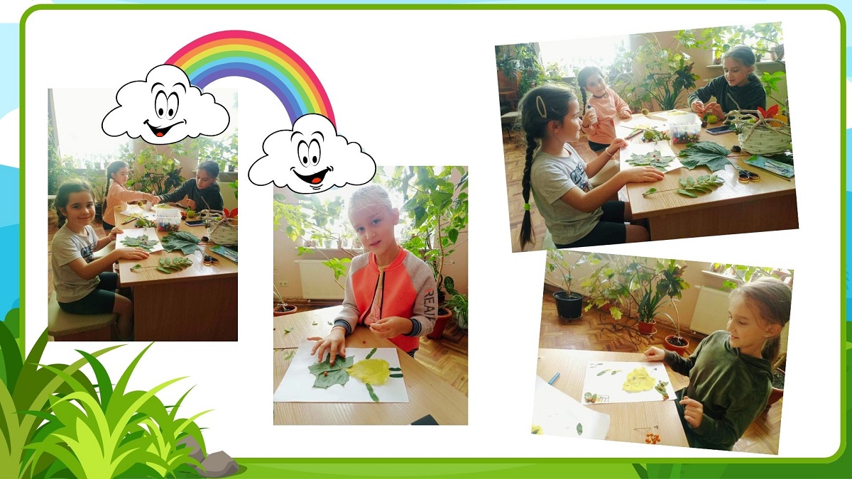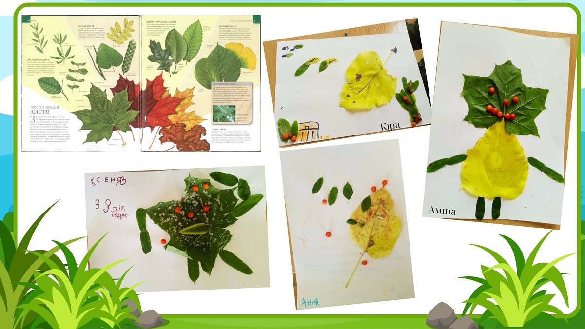 Під час веселої руханки намагалися на швидкість відтворити дерева за об’ємом та висотою. Чудовим завершенням зустрічі став майстер-клас зі створення аплікації з листочків дерев.