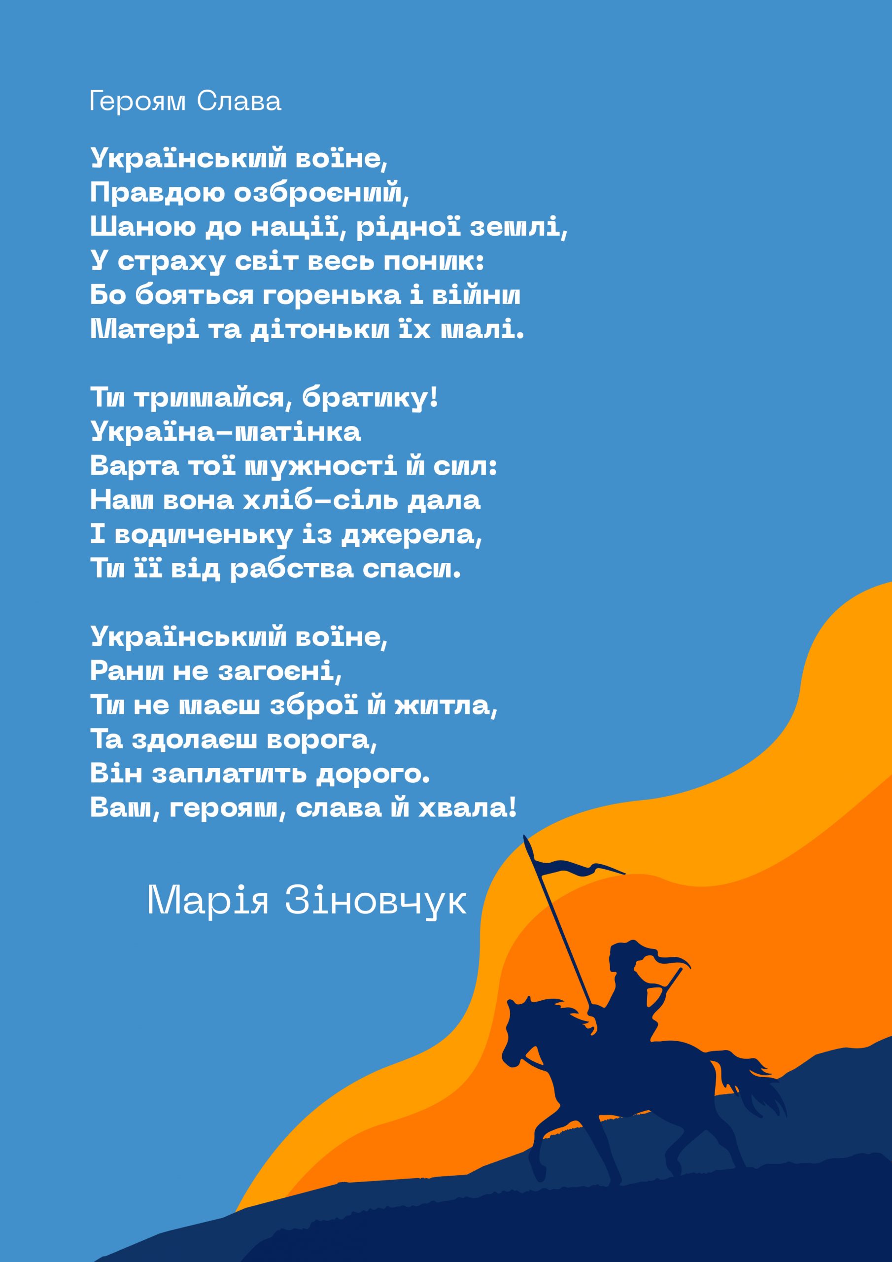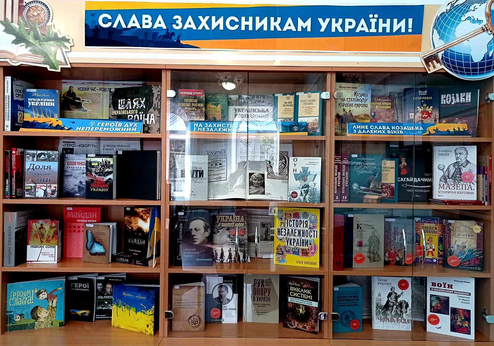 Для відвідувачів у бібліотеці оформили героїко-патріотичну зону «Слава захисникам України!», яка знайомить зі славною історією з прадавніх годин до сьогодення. Буремні події сьогодення знаходять своє відображення у творчості сучасних українських письменників. До уваги користувачів пропонуємо цикл патріотичних плакатів «Захисникам держави – честь і слава!» з віршами, які надихають на перемогу.