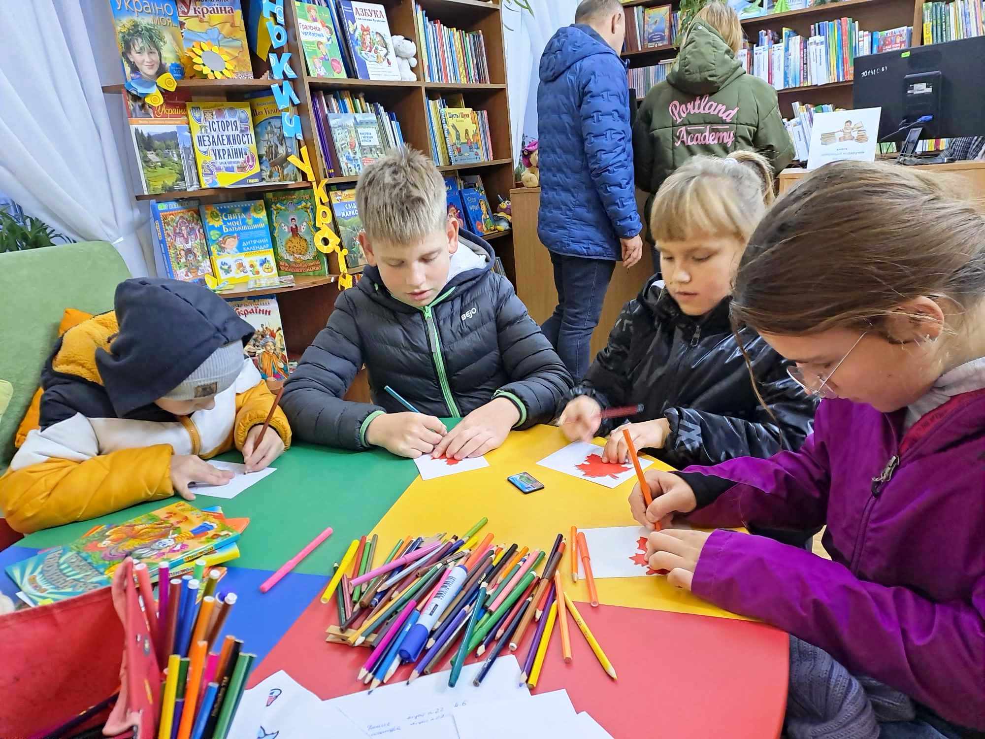 Читачі ознайомились з нетрадиційною технікою малювання – пуантилізмом, захоплено створювали з безлічі маленьких різнокольорових крапок зображення осінніх листочків на аркушах звичайного білого паперу.