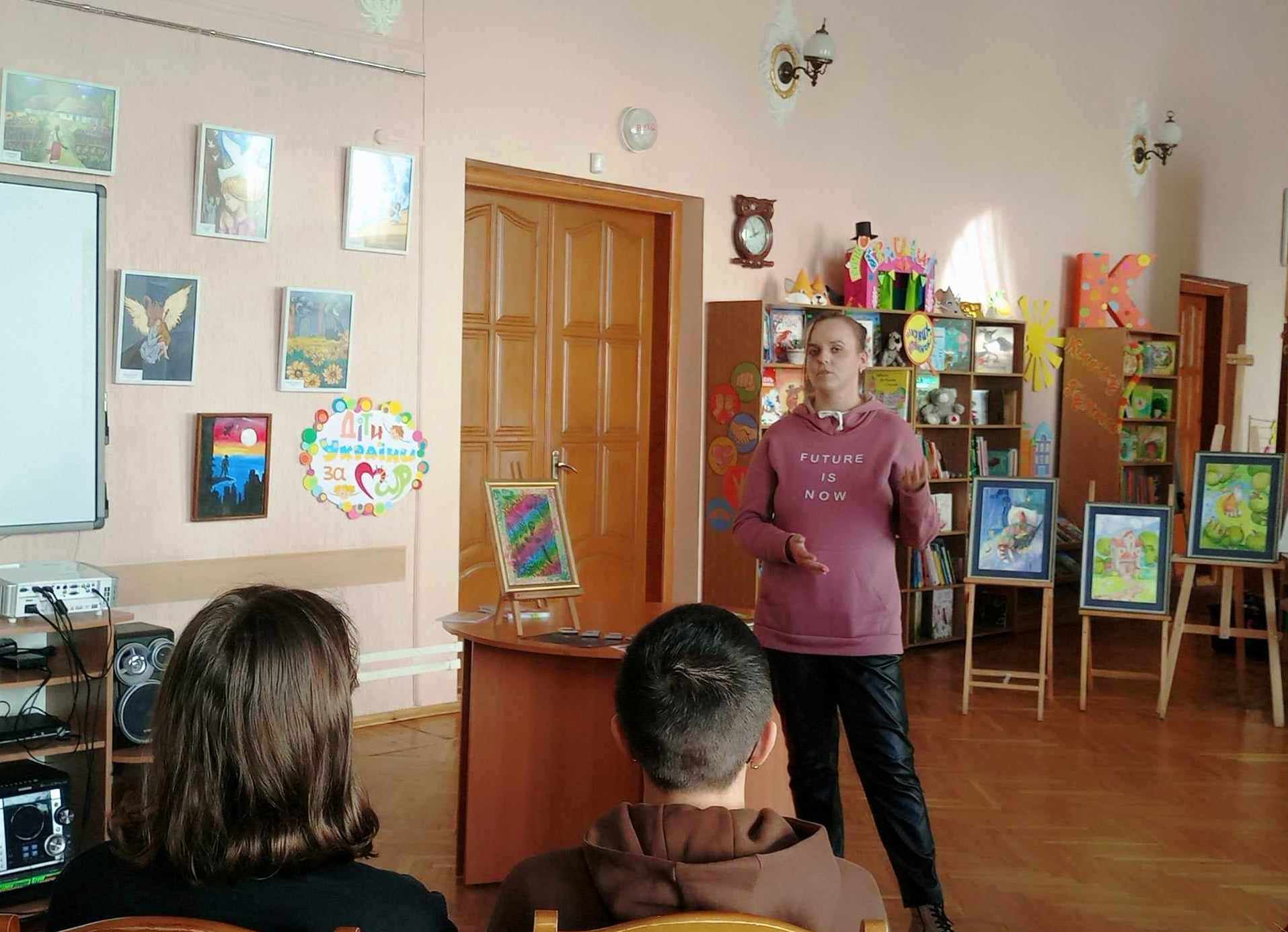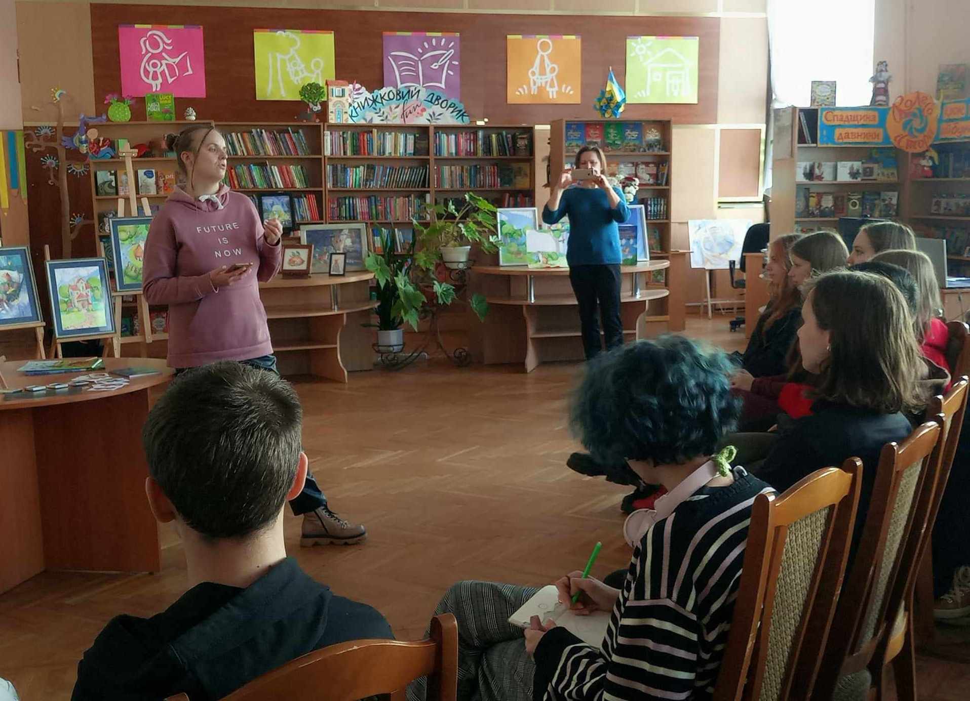 Здобувачі освіти другого курсу спеціальності «Графічний дизайн» разом із Світланою Фурманюк, викладачем Відокремленого структурного підрозділу Житомирського фахового коледжу Київського Національного університету будівництва завітали на креативний захід до бібліотеки.
