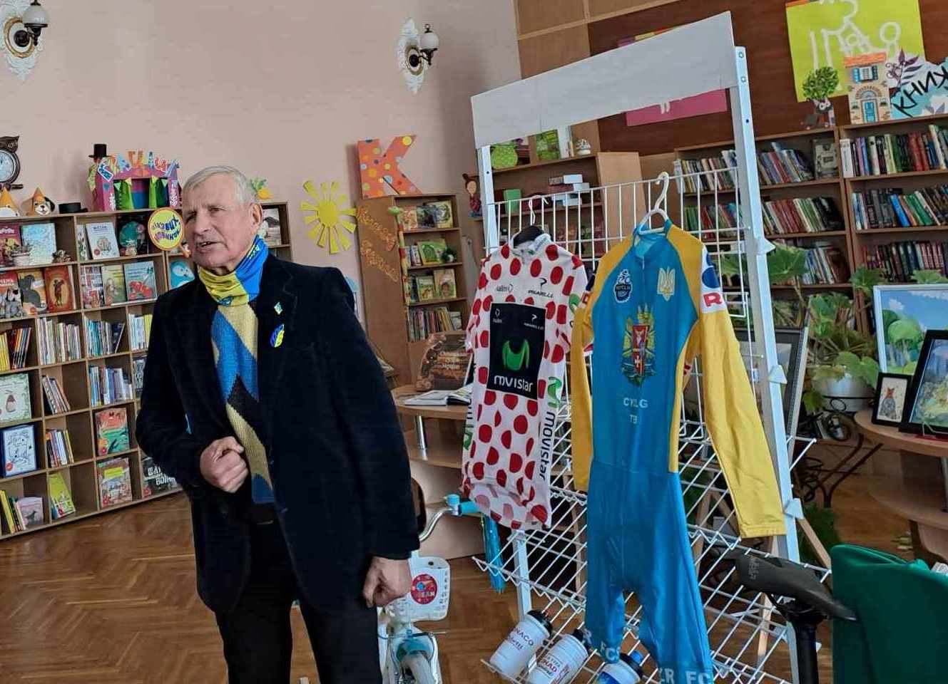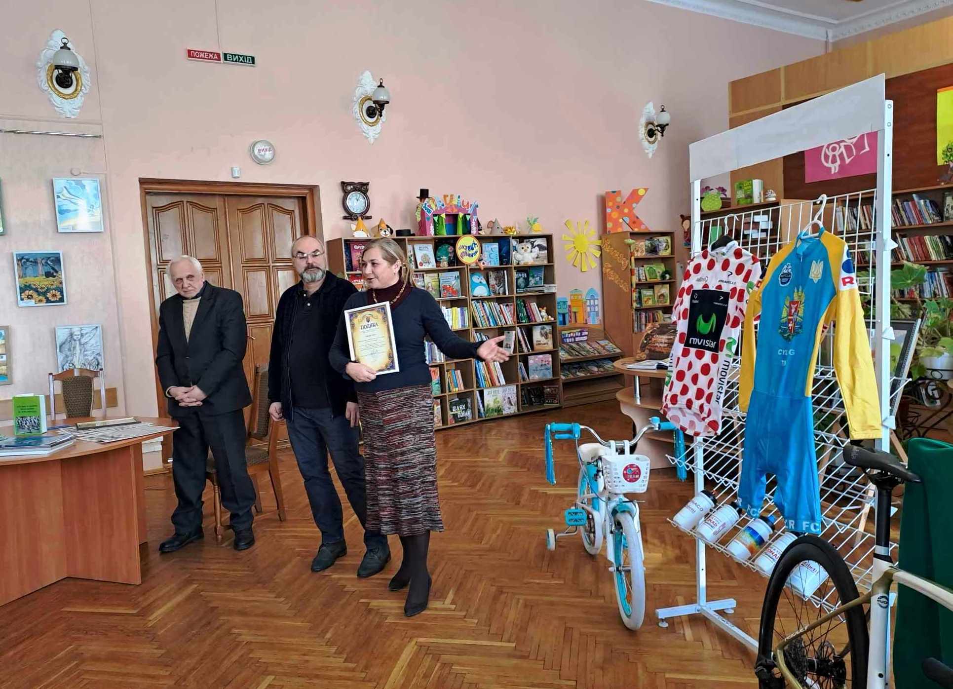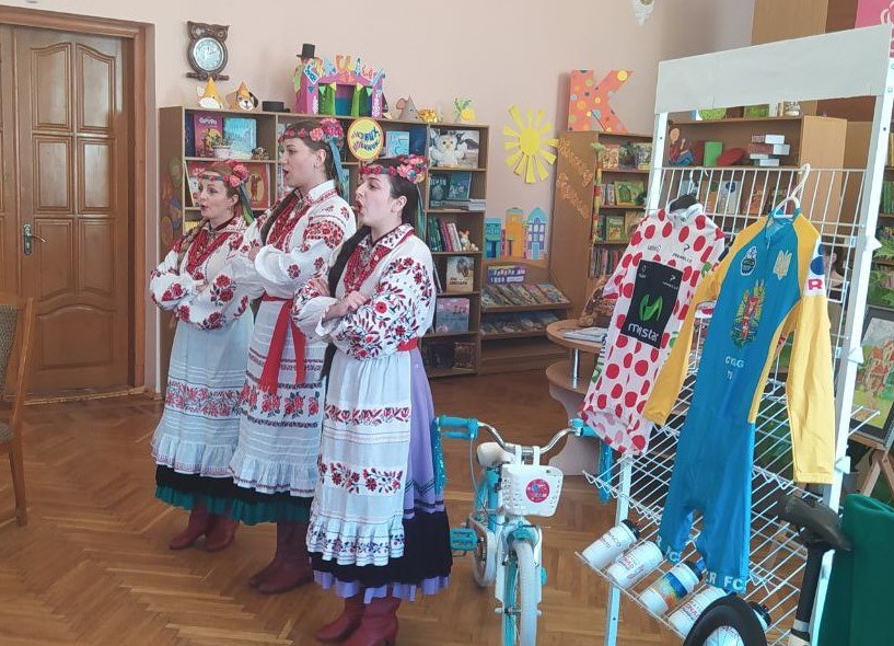 Бібліотекарі разом із велогонщиком Михайлом Печерським читали патріотичні вірші українських поетес Галини Цепкової і Віри Павленко.
