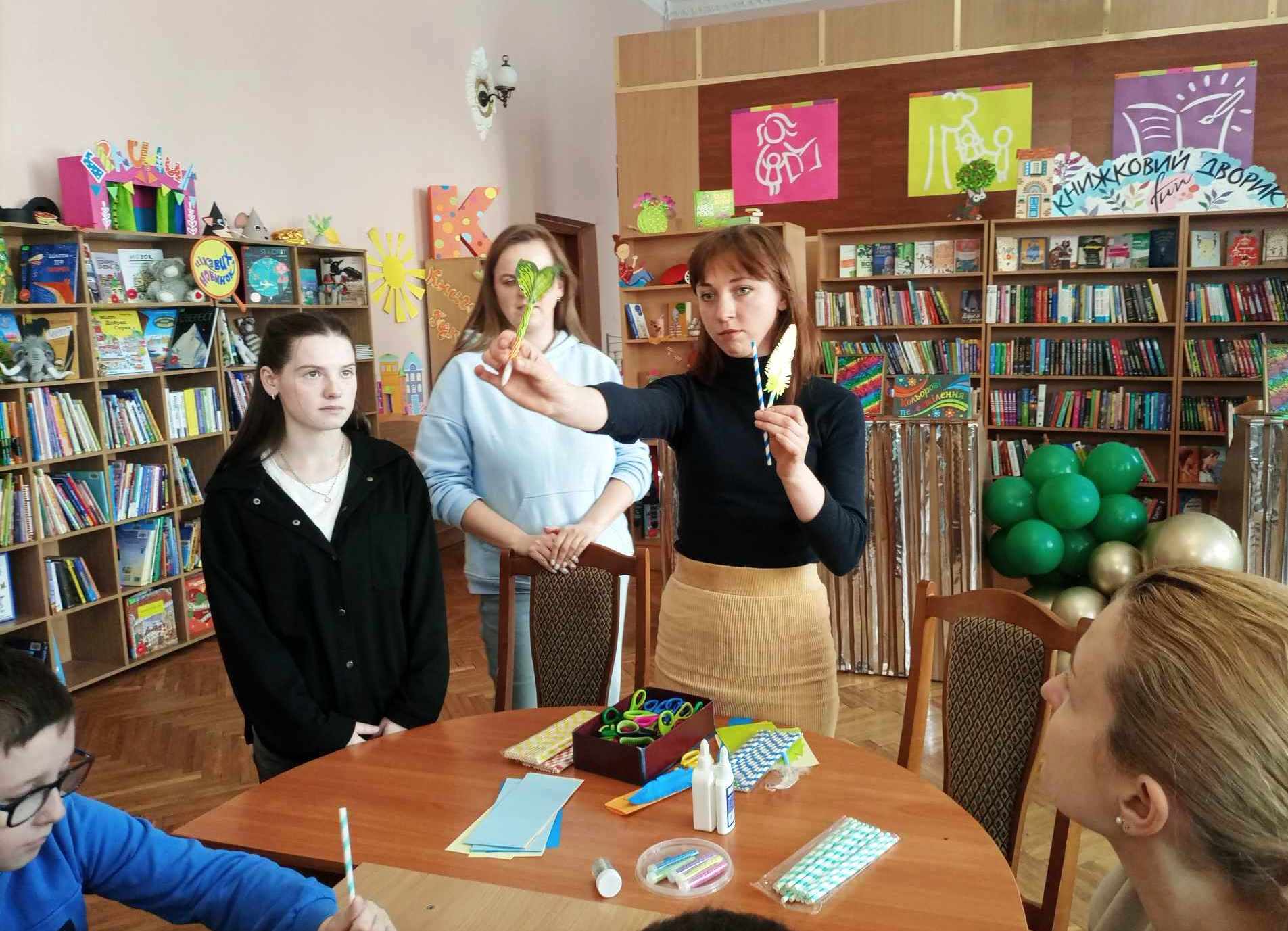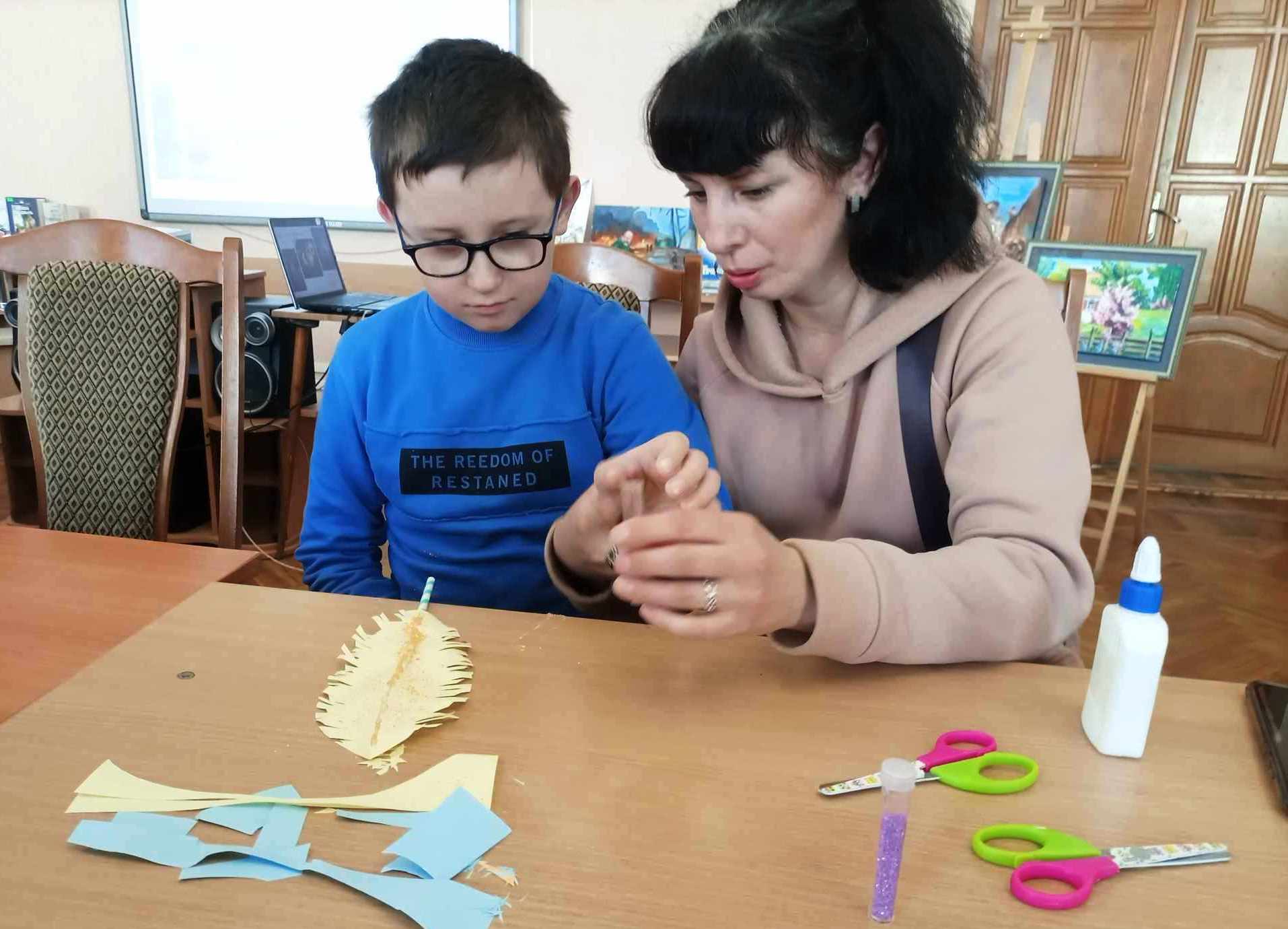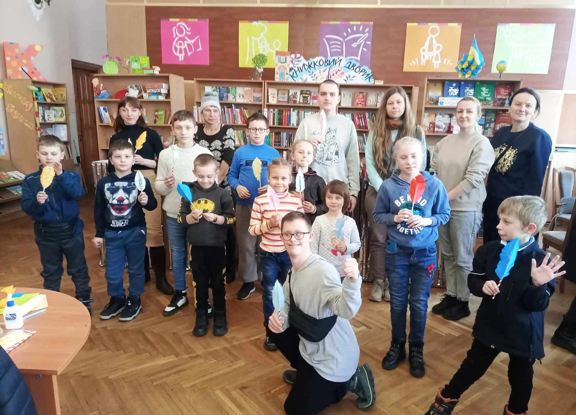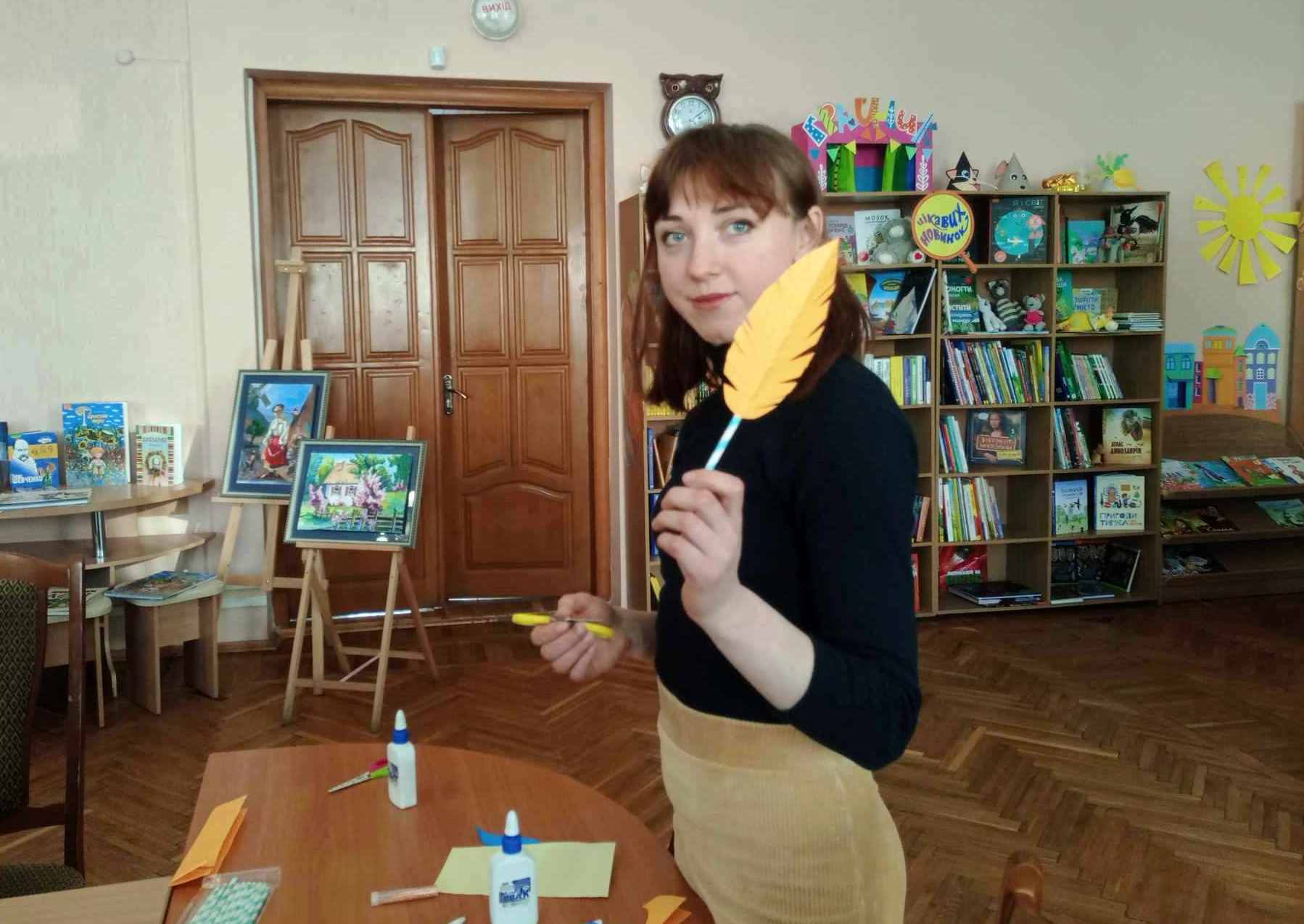 На згадку про захід творчій майстерні діти створили об’ємне перо у техніці паперопластики.