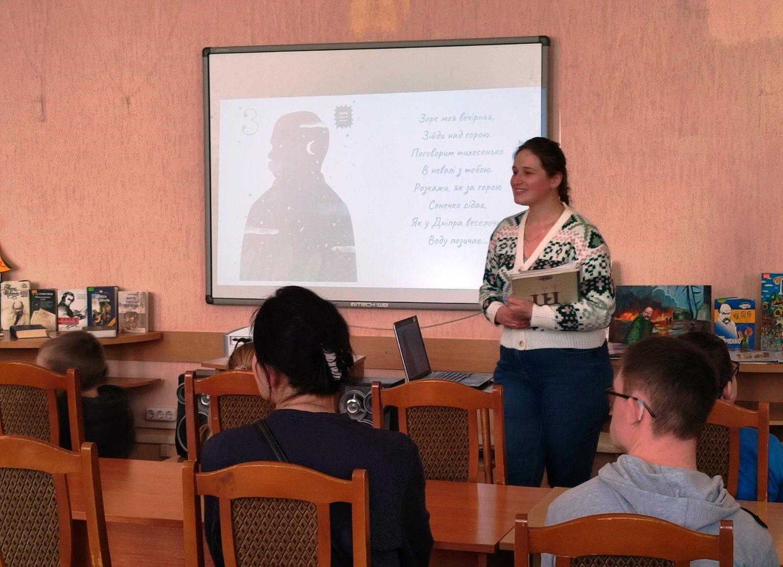 Учасники заходу під час мультимедійної презентації арт-буку Леоніда Ушкалова «Шевченко від А до Я» з серії абеток-енциклопедій «Видавництва Старого Лева», ознайомились з цікавими фактами життя і творчості Тараса Шевченка.