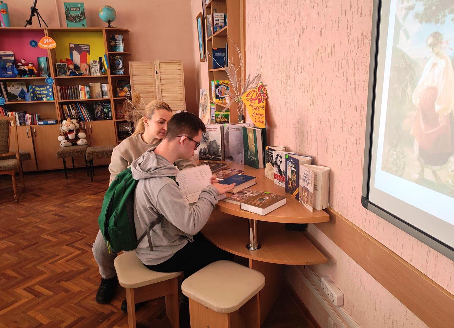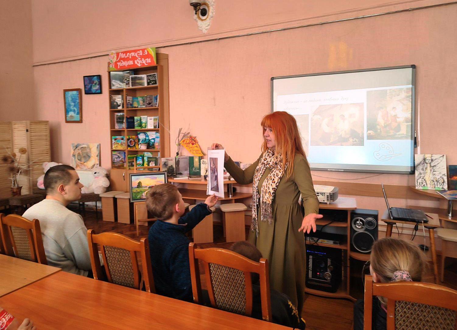Діти стали учасниками арт-колажу «Поезія у живопису Тараса Шевченка», спілкувалися з бібліогідами на мистецькій алеї «Свою Україну любіть» разом з вихованцями гуртка «Образотворче мистецтво» Житомирського міського центру науково-технічної творчості учнівської молоді.