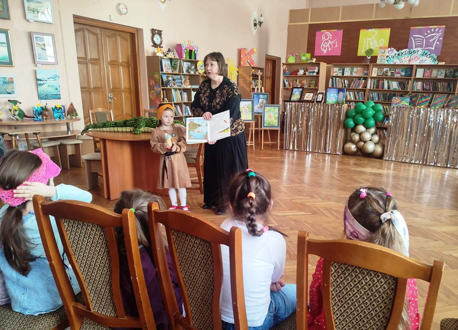 Малеча здійснила танцювальну мандрівку до соціальної кімнати «Читай та грай!» під заклики агента К3 (Крутезного Книжкового Крокодильчика): «Кажімо раз-Ква-три!».