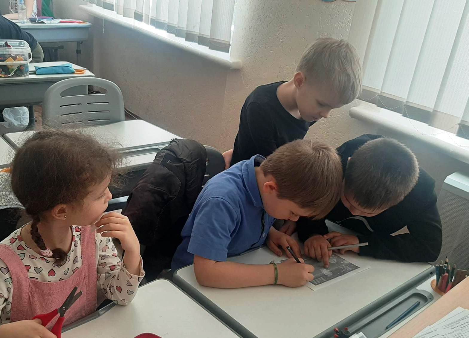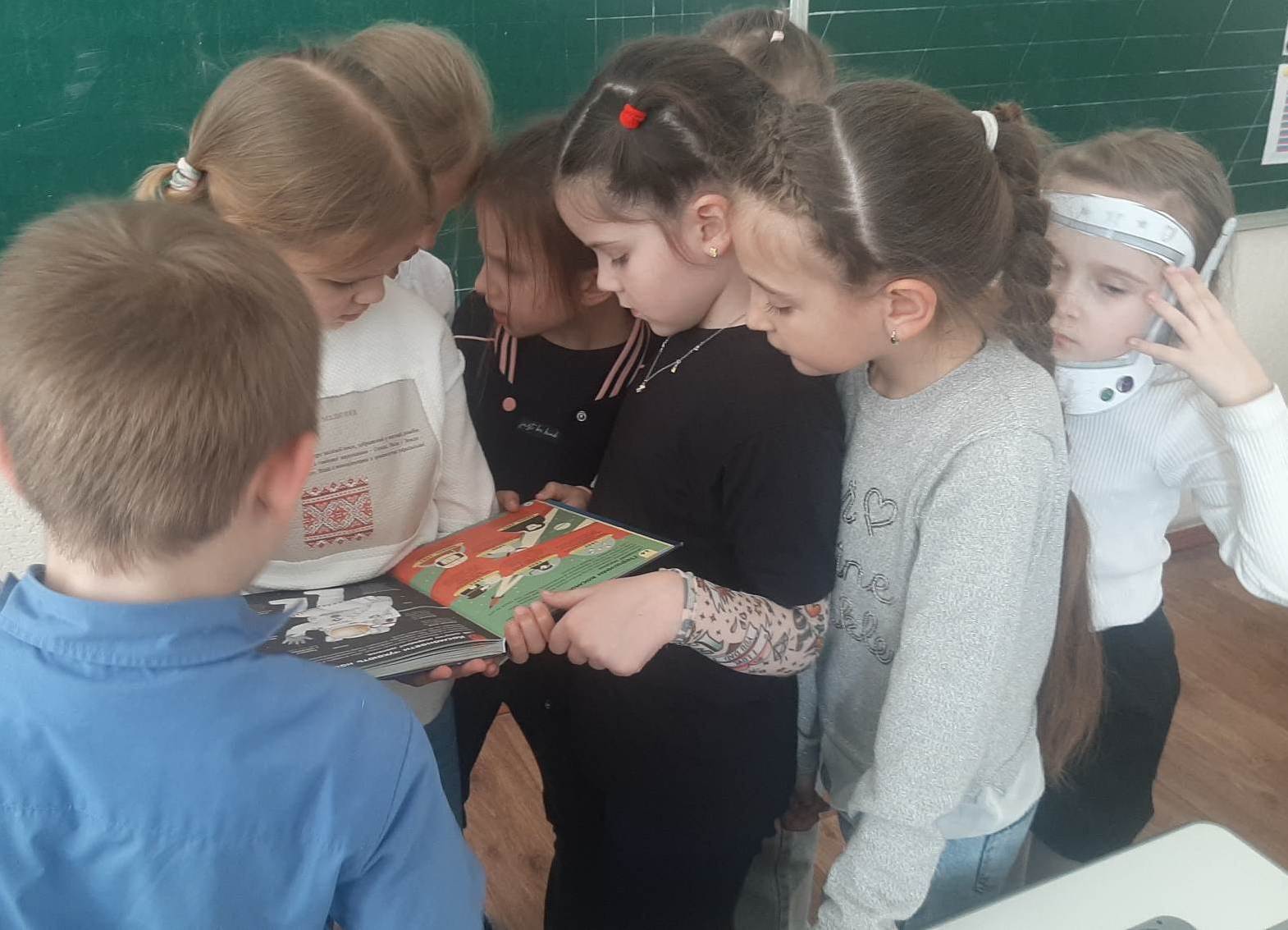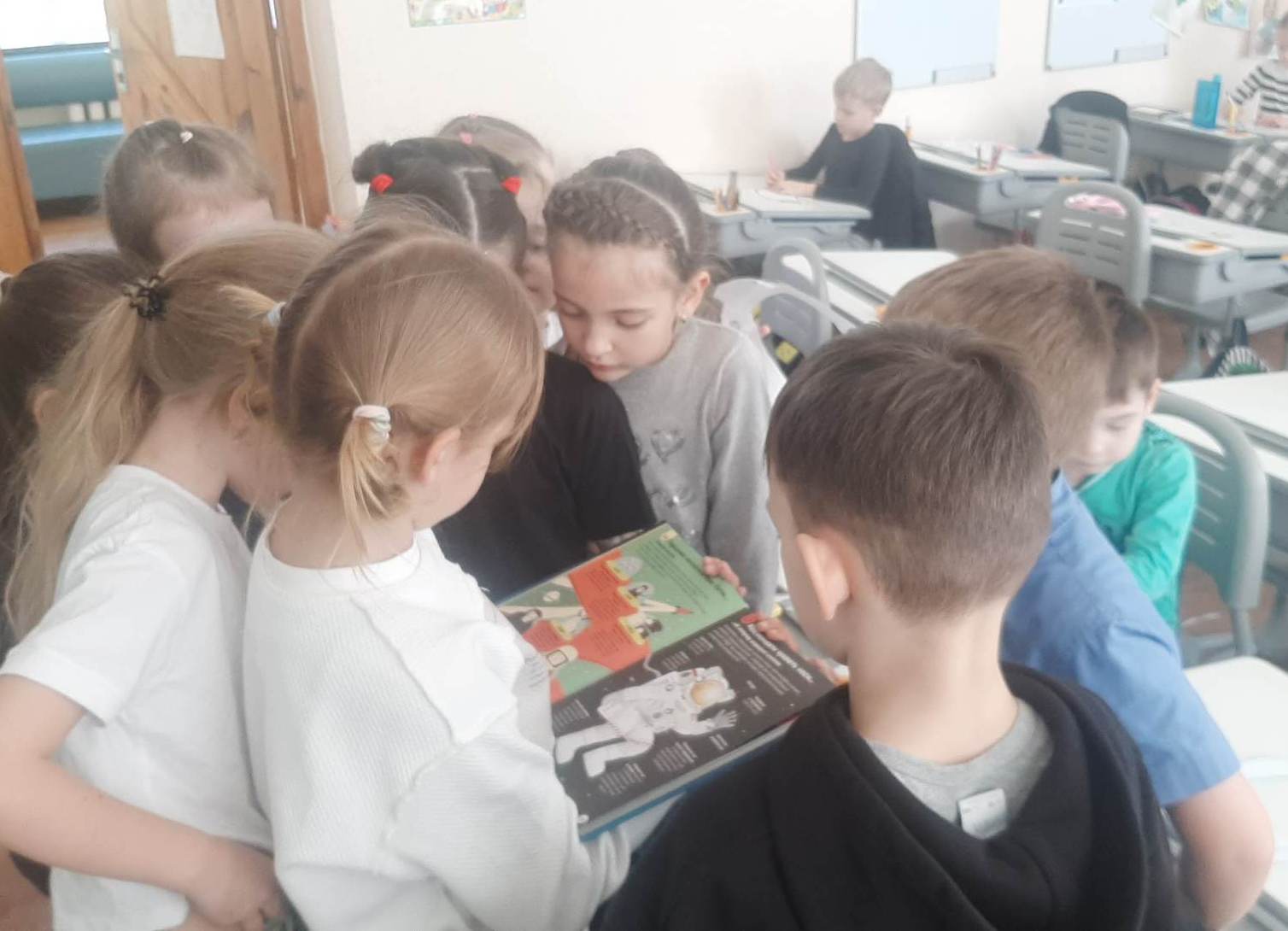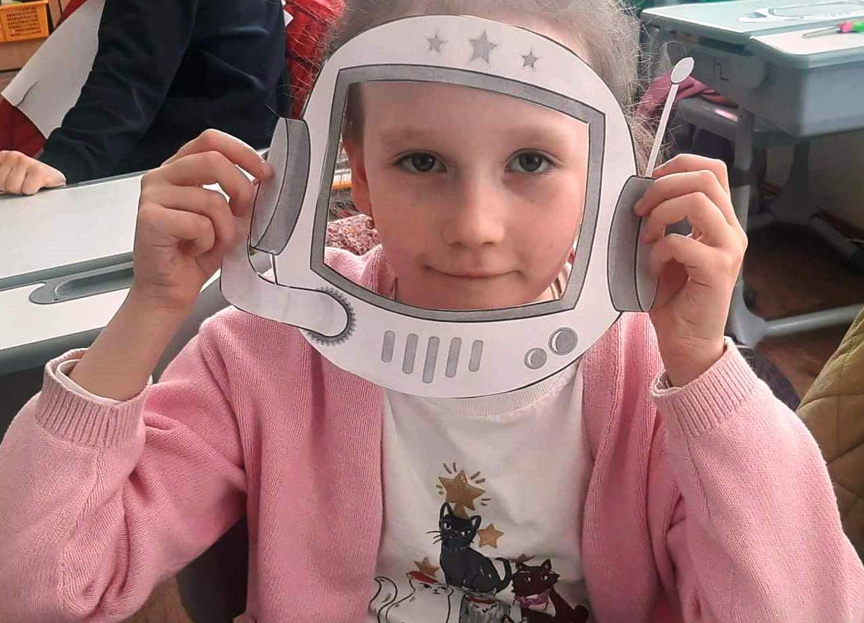 Юні дослідники космосу пересувались спеціально розробленим бібліотекарями маршрутом уявним зоряним небом за книгою Алекса Фріта, Еліса Джеймса і Джерома Мартіна «100 фактів про космос». Ця інформативна книжка є захоплюючою короткою історією освоєння космосу. Діти дізнались про те, чи можливо побачити зірки вдень, як втекти від чорної діри, чому не варто їсти бутерброди на космічному кораблі та багато іншого. Для незвичайної подорожі учні зробили шоломи космонавтів у творчій майстерні «Є ідея!».