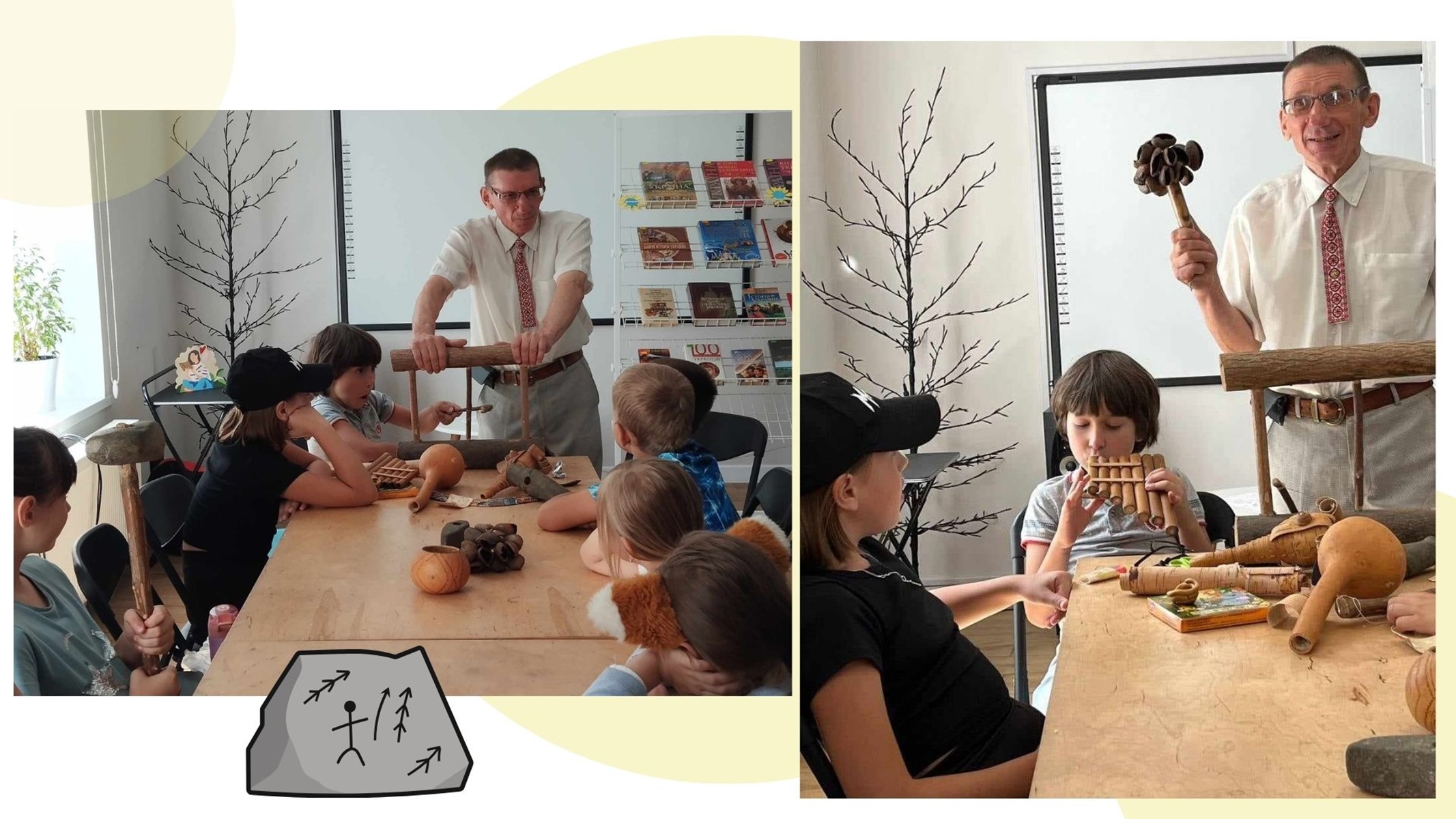 У всіх присутніх була також гарна нагода розважитись. Адже серед таких незвичайних предметів і речей, що продемонстрував спікер були і музичні інструменти, які діти із радістю спробували опанувати.