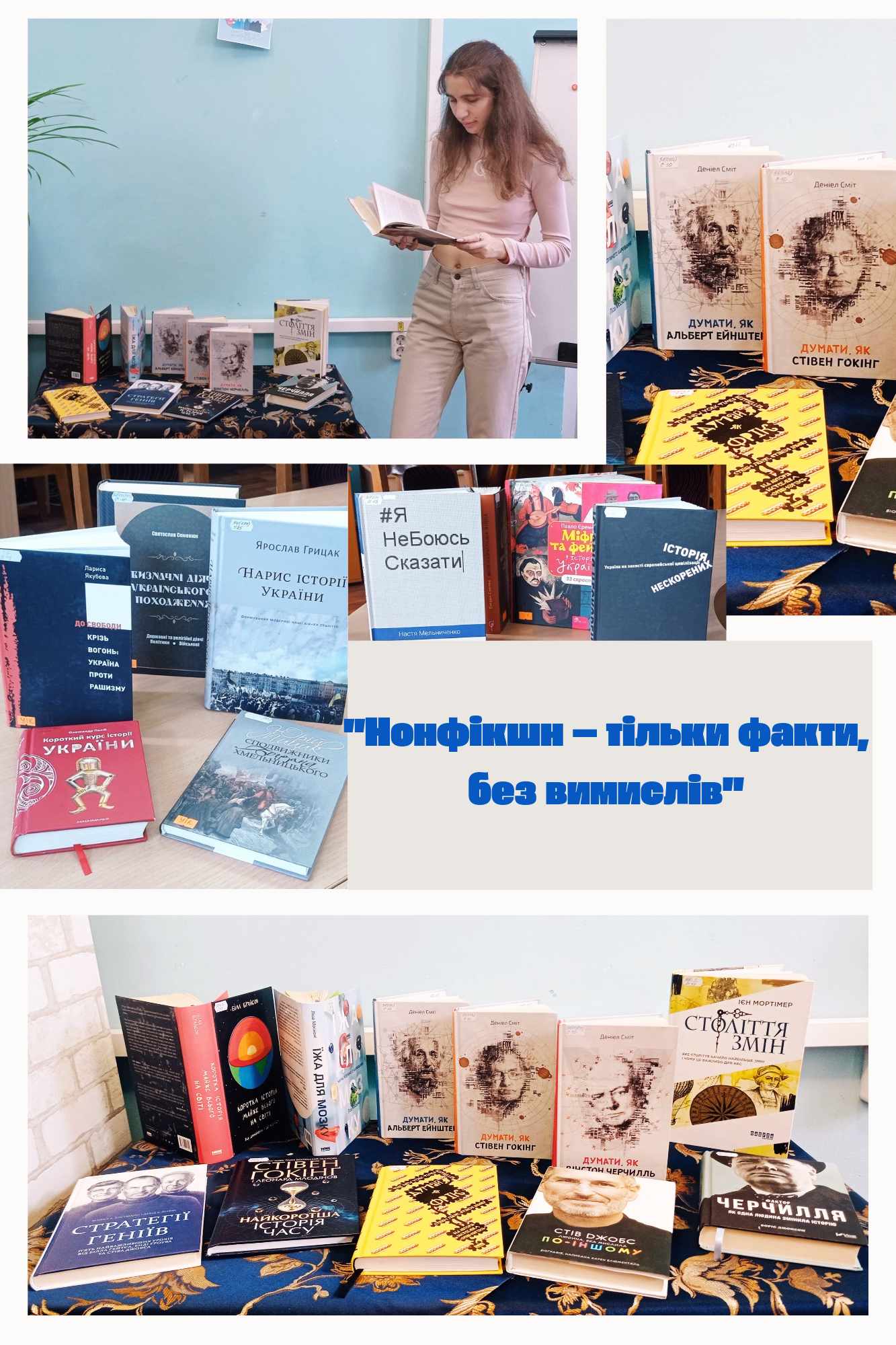 Представлені книги – особливого літературного жанру, для якого характерна побудова сюжетної лінії на реальних подіях. Зібрані на виставці видання розповідають про історичні й наукові факти, різні теорії і відкриття, цікаві знахідки і дослідження.