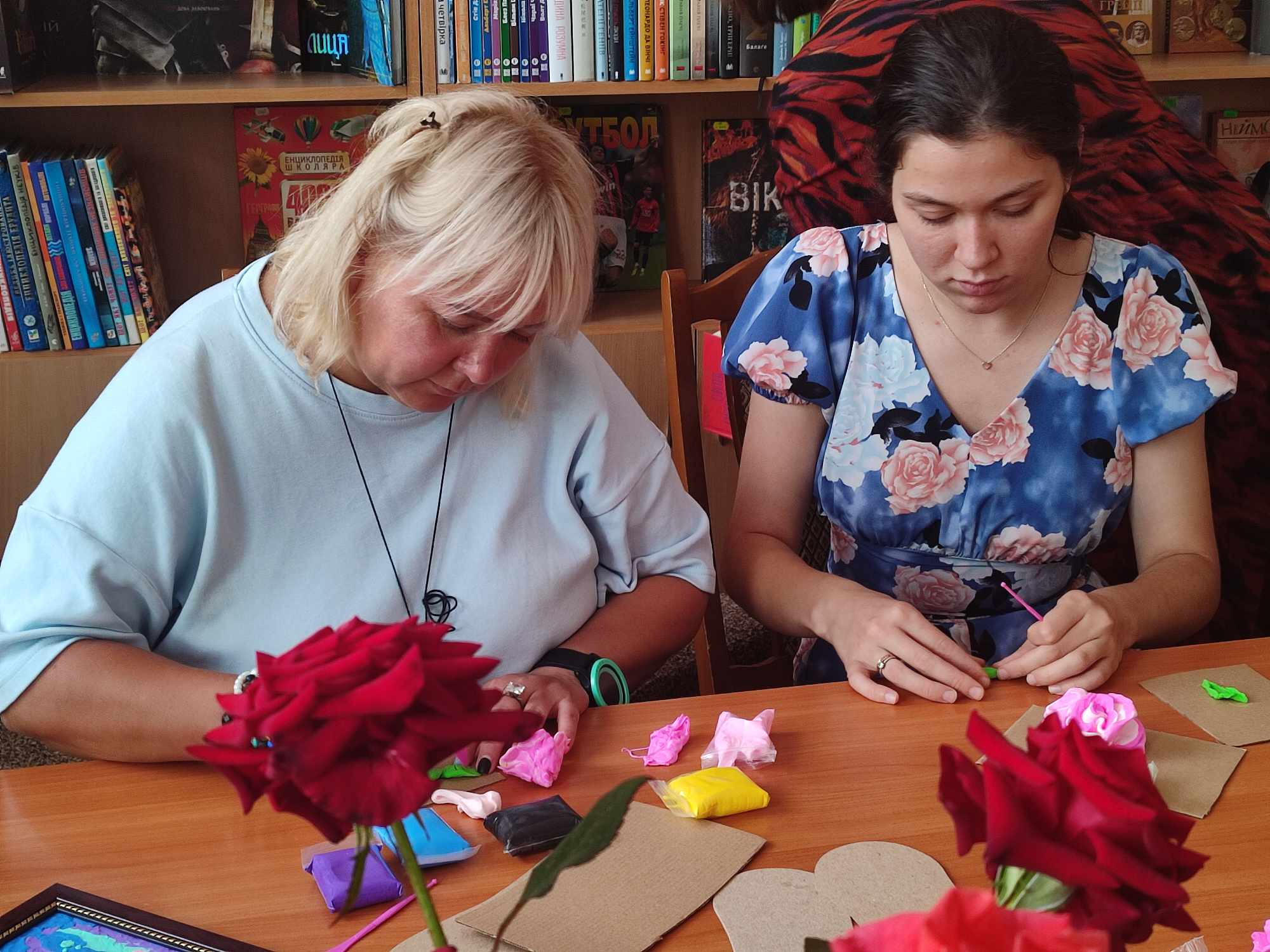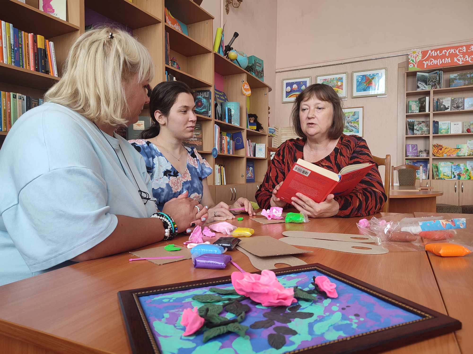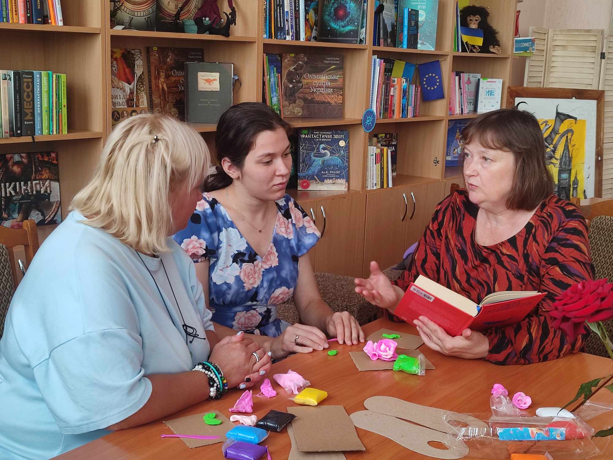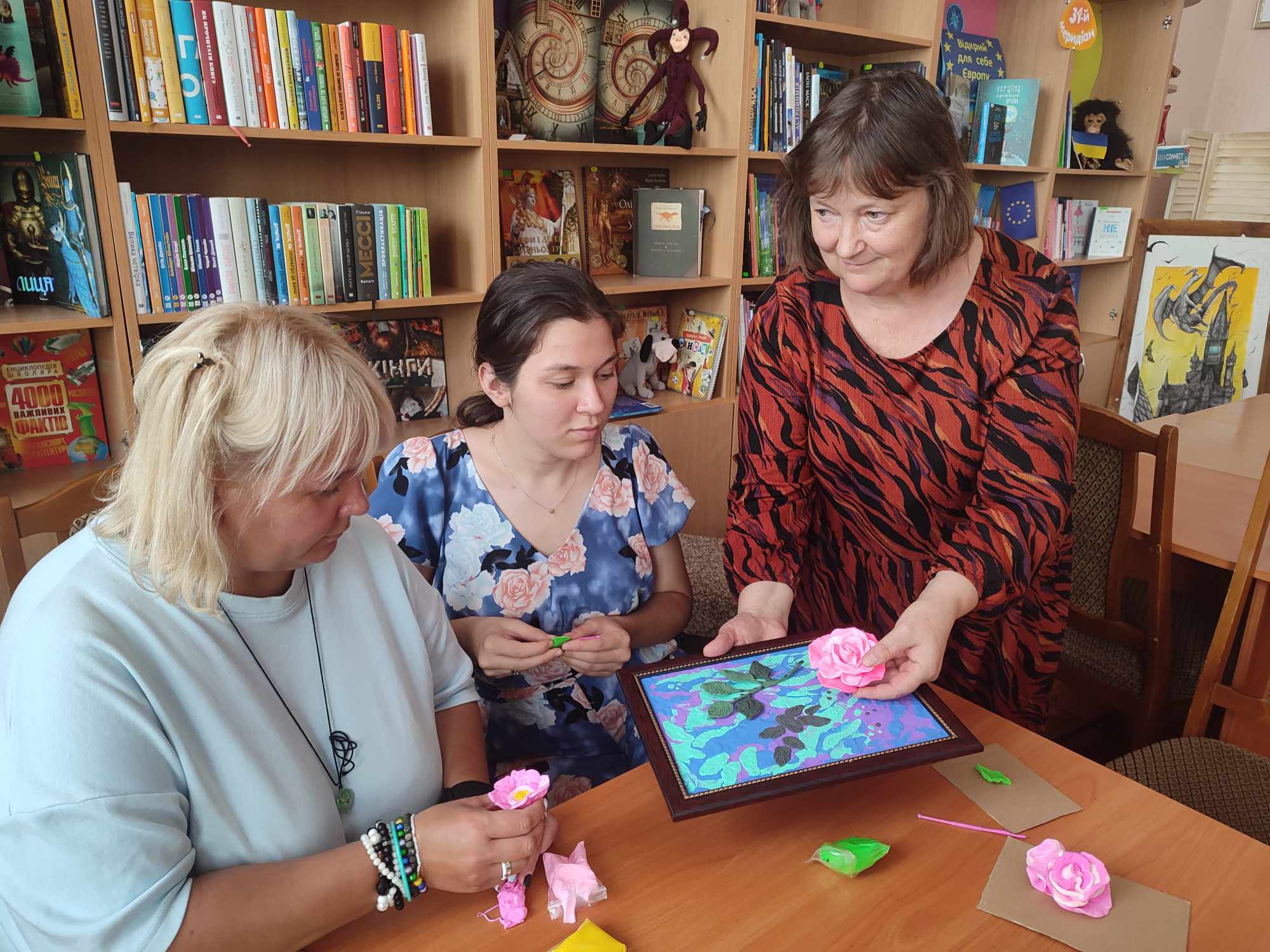 Щоб зняти емоційну напругу, всі разом долучились до майстер-класу зі створення енергетичної картини «Налаштовані на позитив» з повітряного пластиліну. Це допомогло колегам, які віднедавна працюють у бібліотеці, зменшити професійне вигорання, надало креативності, сприяло пошуку нових ідей.