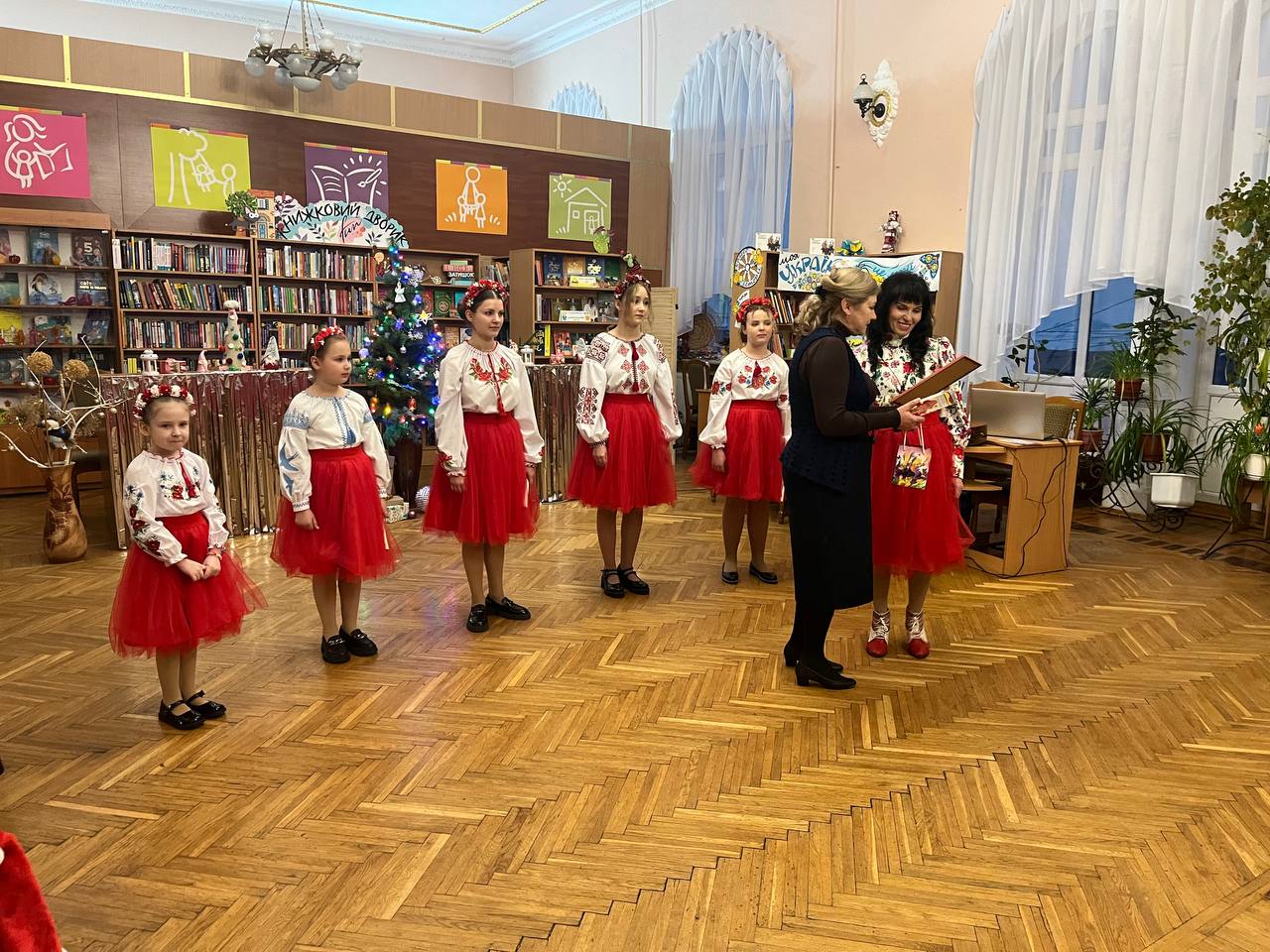 В. о. директора бібліотеки Лариса Мозгова вручила подяку Ларисі Бойко за організацію і проведення концертних програм з елементами інтерактиву, вагомий вклад у розвиток інклюзивної освіти в Україні та солодощі учасницям дитячого ансамблю «Квіти».