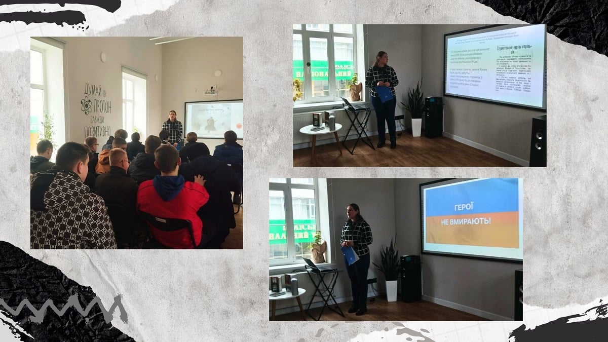 Протягом дня бібліотекарі провели історичний екскурс «В понурій темряві віків світити будуть завжди Крути!» для студентів Житомирського автомобільно-дорожнього фахового коледжу Національного транспортного університету та старшокласників приватної альтернативної школи «Синергія».