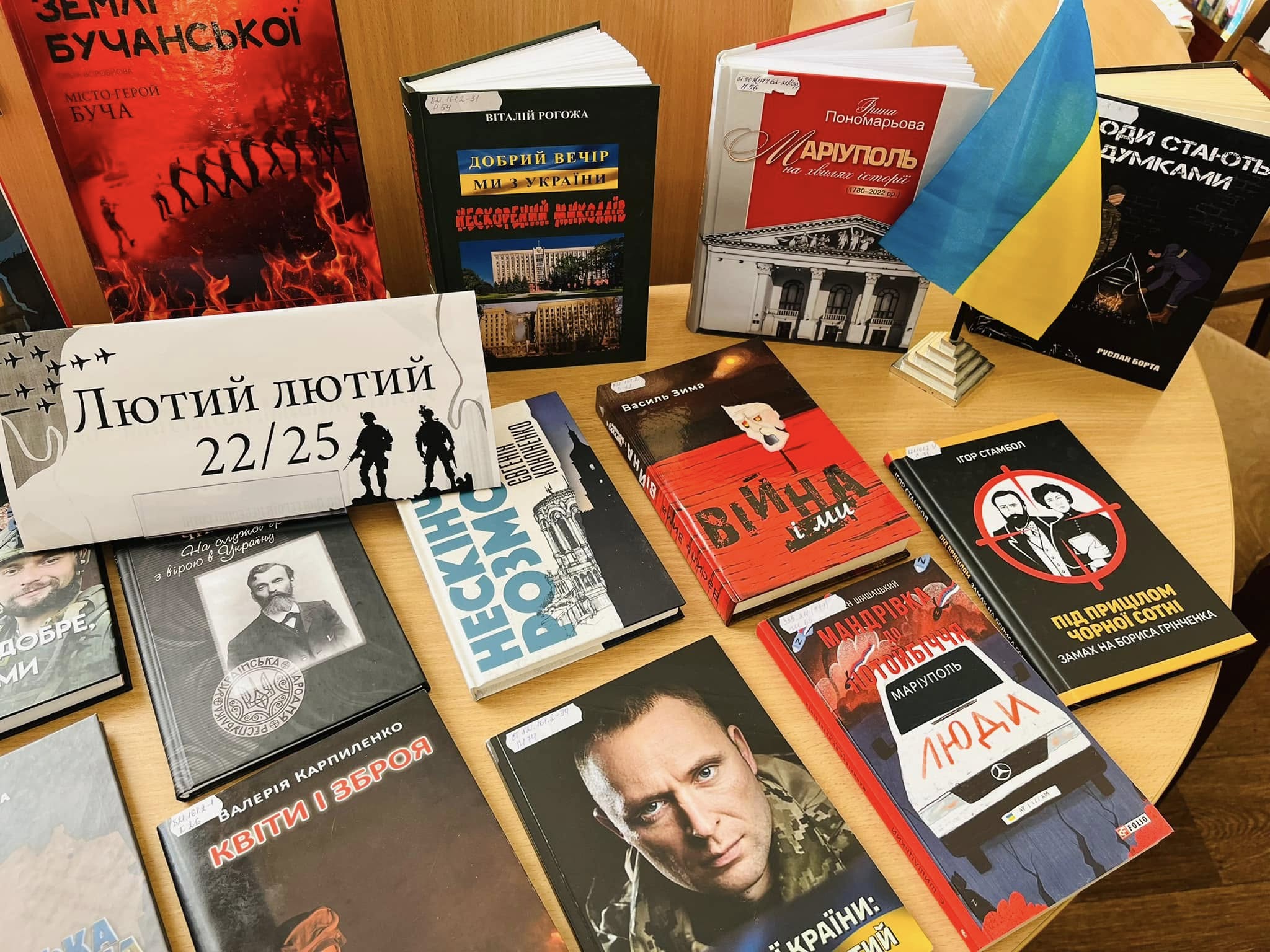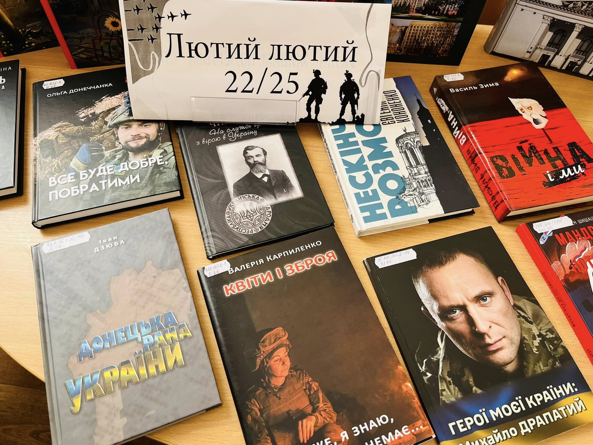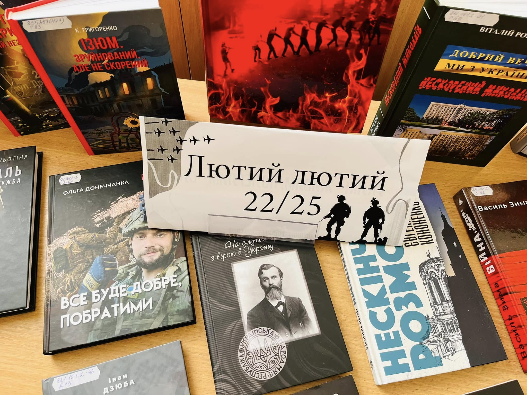 До третьої річниці повномасштабного вторгнення російської федерації в Україну бібліотекарі підготували виставку-застереження «Лютий лютий 22/25». Ця виставка — це не просто нагадування про трагічні події, це — заклик до пам’яті, до усвідомлення того, що війна триває, і що кожен з нас має зробити свій внесок у перемогу.