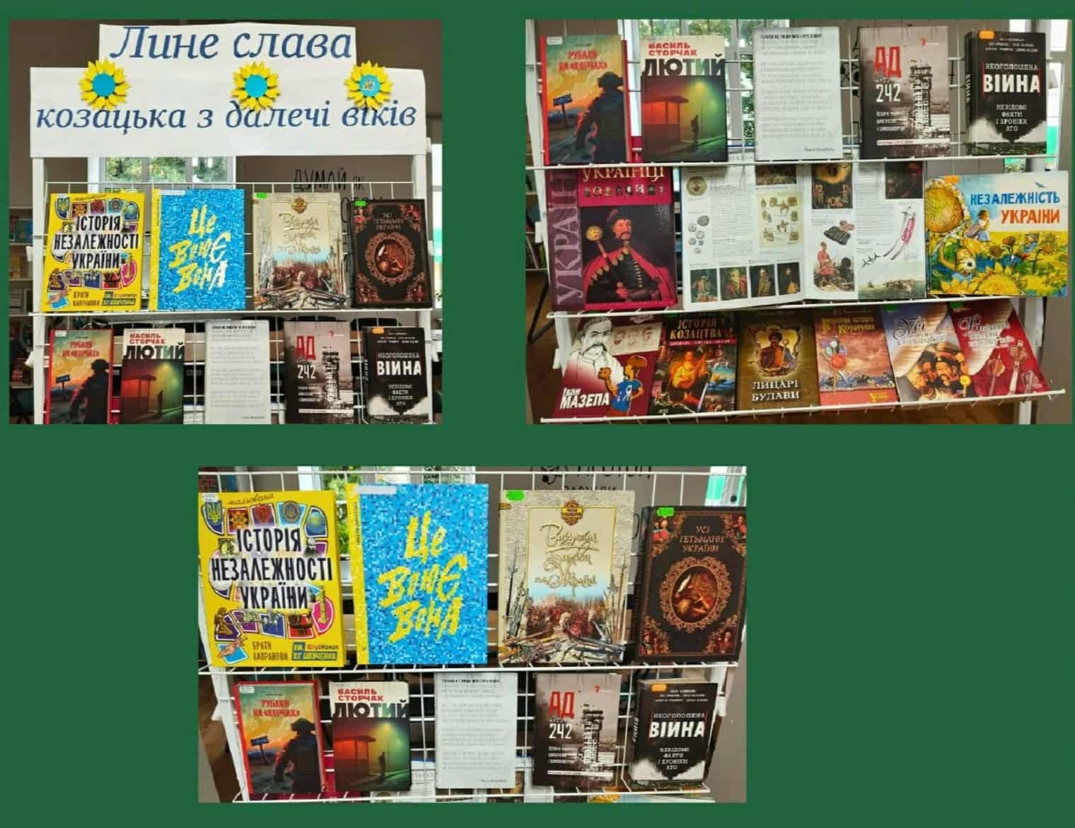 А у Молодіжному просторі «Ідея-клуб» відкрилася книжкова інсталяція «Лине слава козацька з далечі віків». Це справжній історичний калейдоскоп: книги про звитяги козаків, їхні традиції, подвиги, що й досі надихають нас на боротьбу. Поруч представлені видання про сучасних захисників і захисниць, які щодня виборюють наше право на свободу і майбутнє.