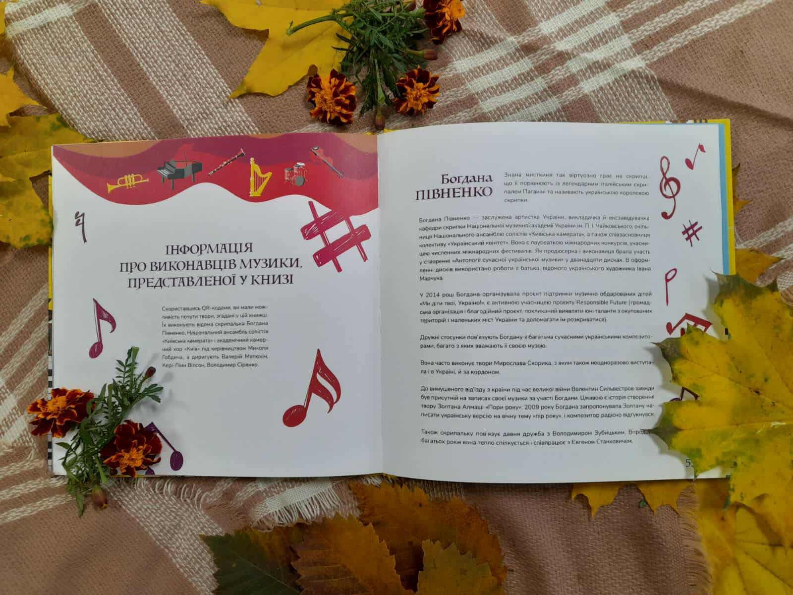 А ще видання має інтерактивні QR-коди на записи у виконанні знаних музикантів – Богдани Півненко та “Київської камерати”. Тож ви не лише читаєте, а й чуєте музику наживо!
