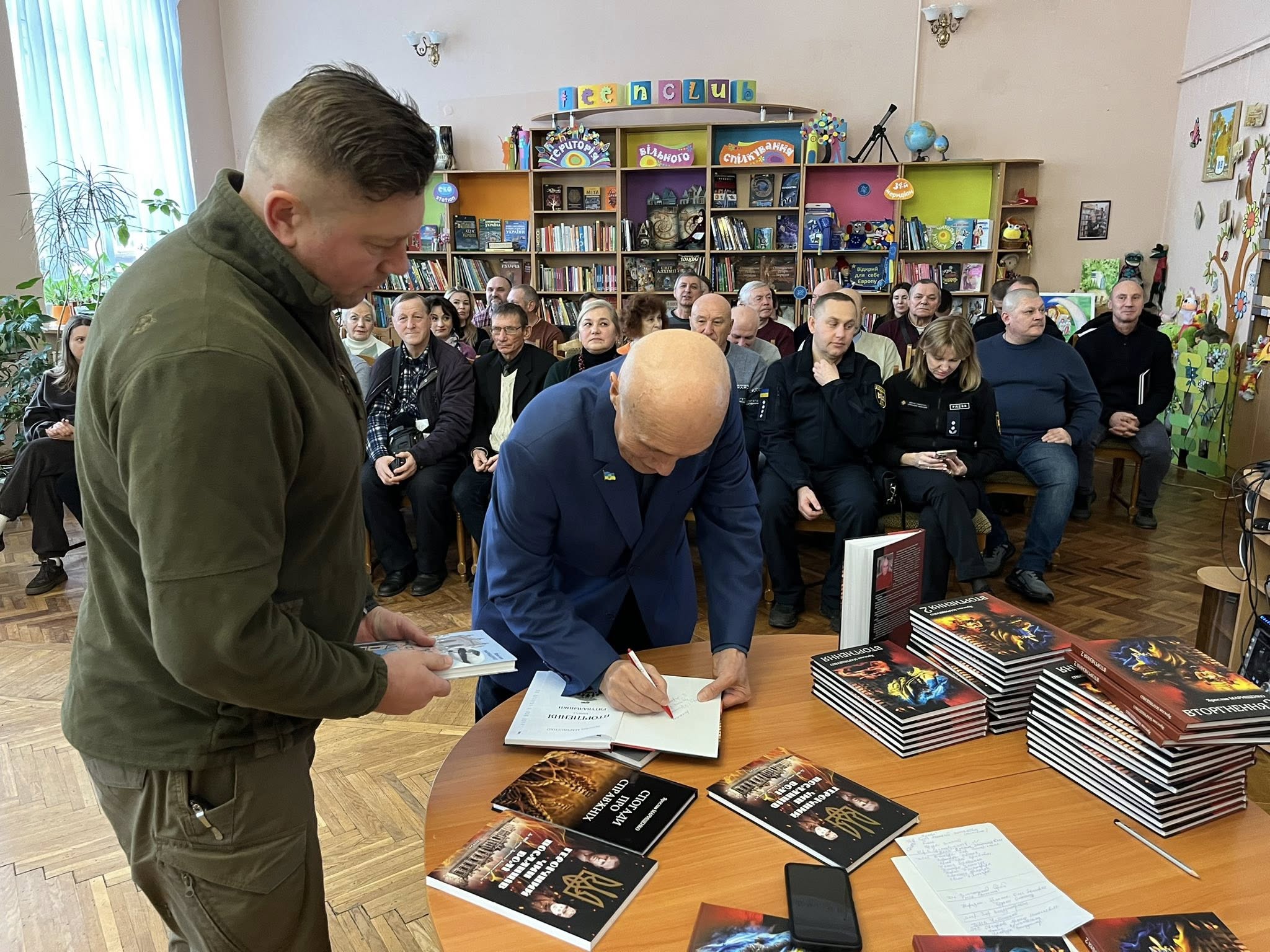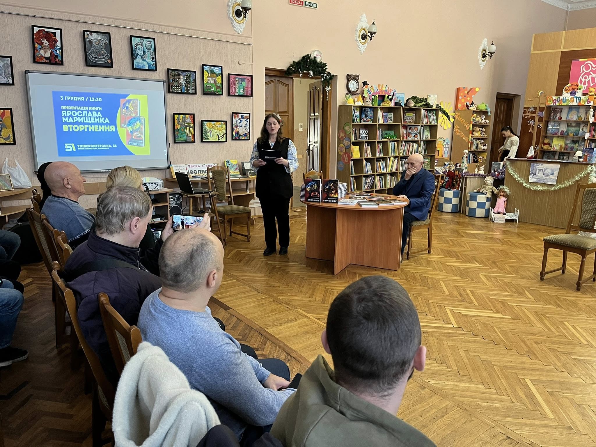 Сьогодні в Обласній бібліотеці для дітей та юнацтва відбулася особлива, по-справжньому щемлива подія — презентація книги Ярослава Марищенка «Вторгнення», що розповідає про людей, які в найстрашніші миті стали на захист України.