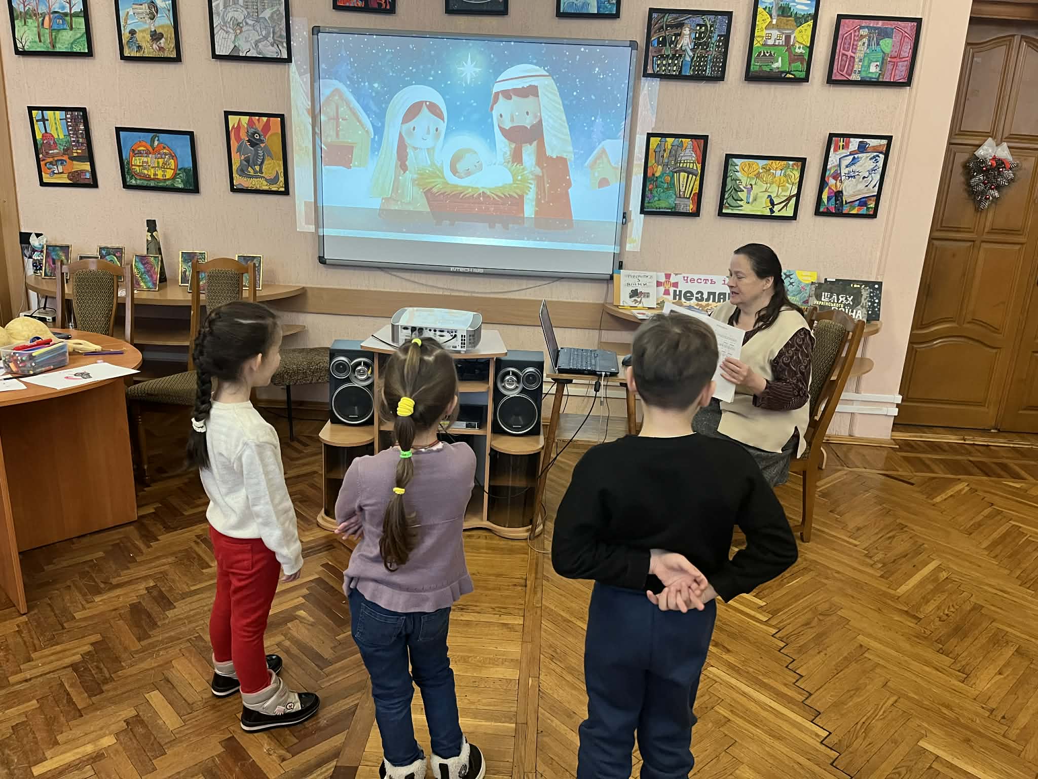 Гурт веселих і кмітливих читайликів долучився до проведення книжкової мозаїки «Сипле зимонька снігами». Бібліотекарі знайомили дітлахів з книжковою виставкою-експозицією «Різдвяна колядка, новорічна щедрівка – традиції свята у кожну домівку», запросили у чарівну подорож до музичного лабіринту «Ось невидиме те слово виринає знову й знову», де на них чекали веселі завдання та цікаві пригоди. Розвага поєднала пісню, рух, гру та імпровізацію, подарувала дітям гарний настрій.