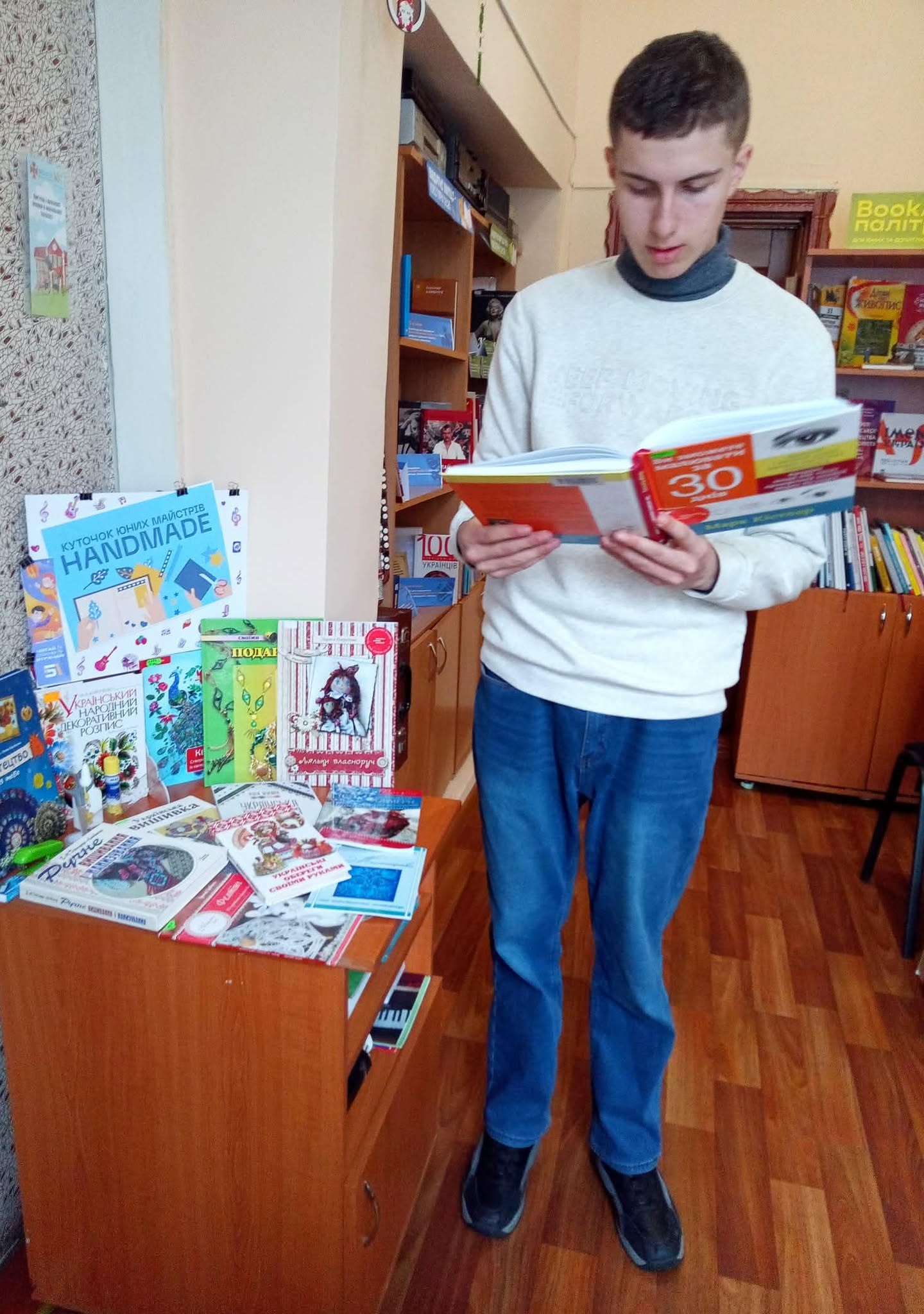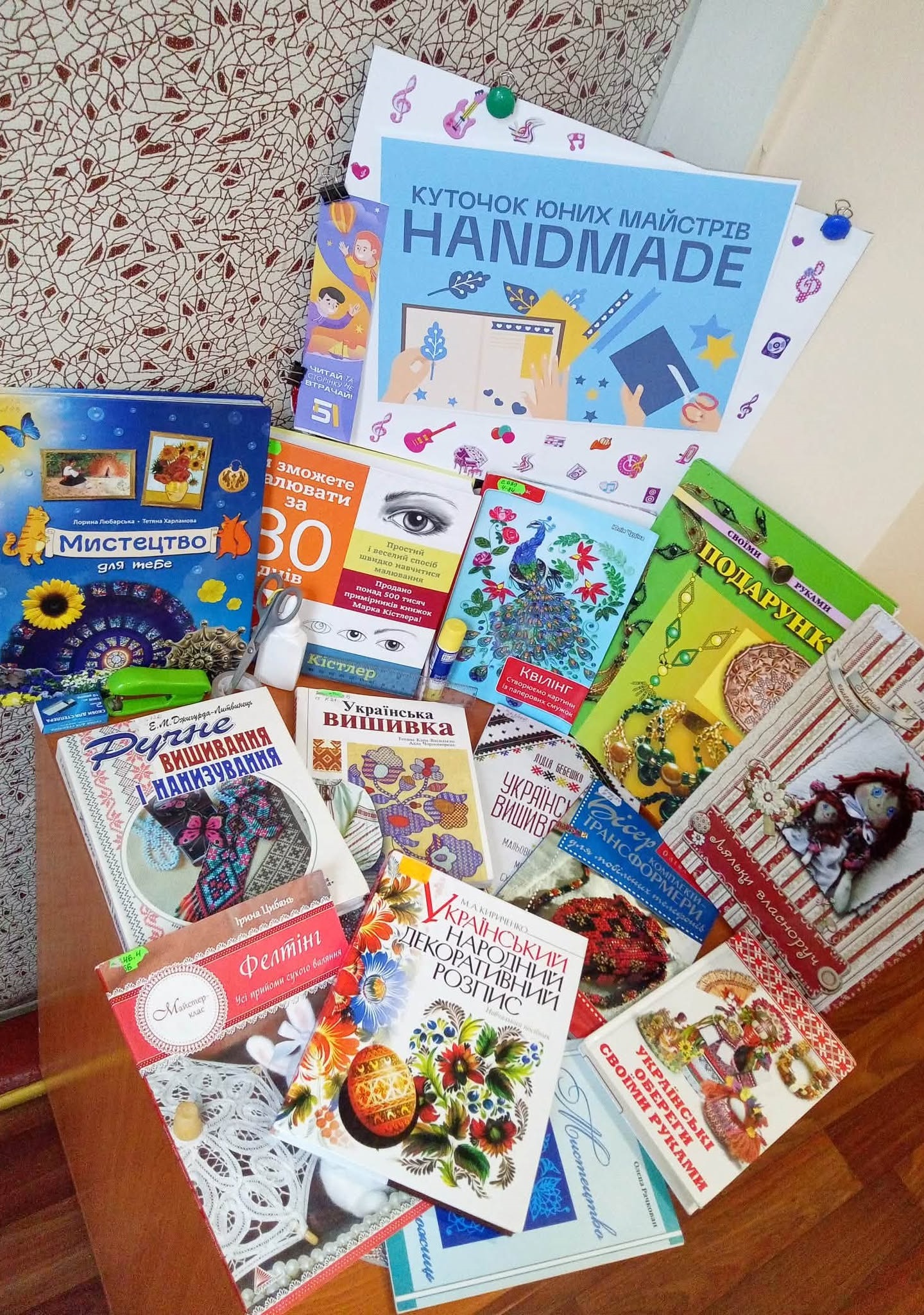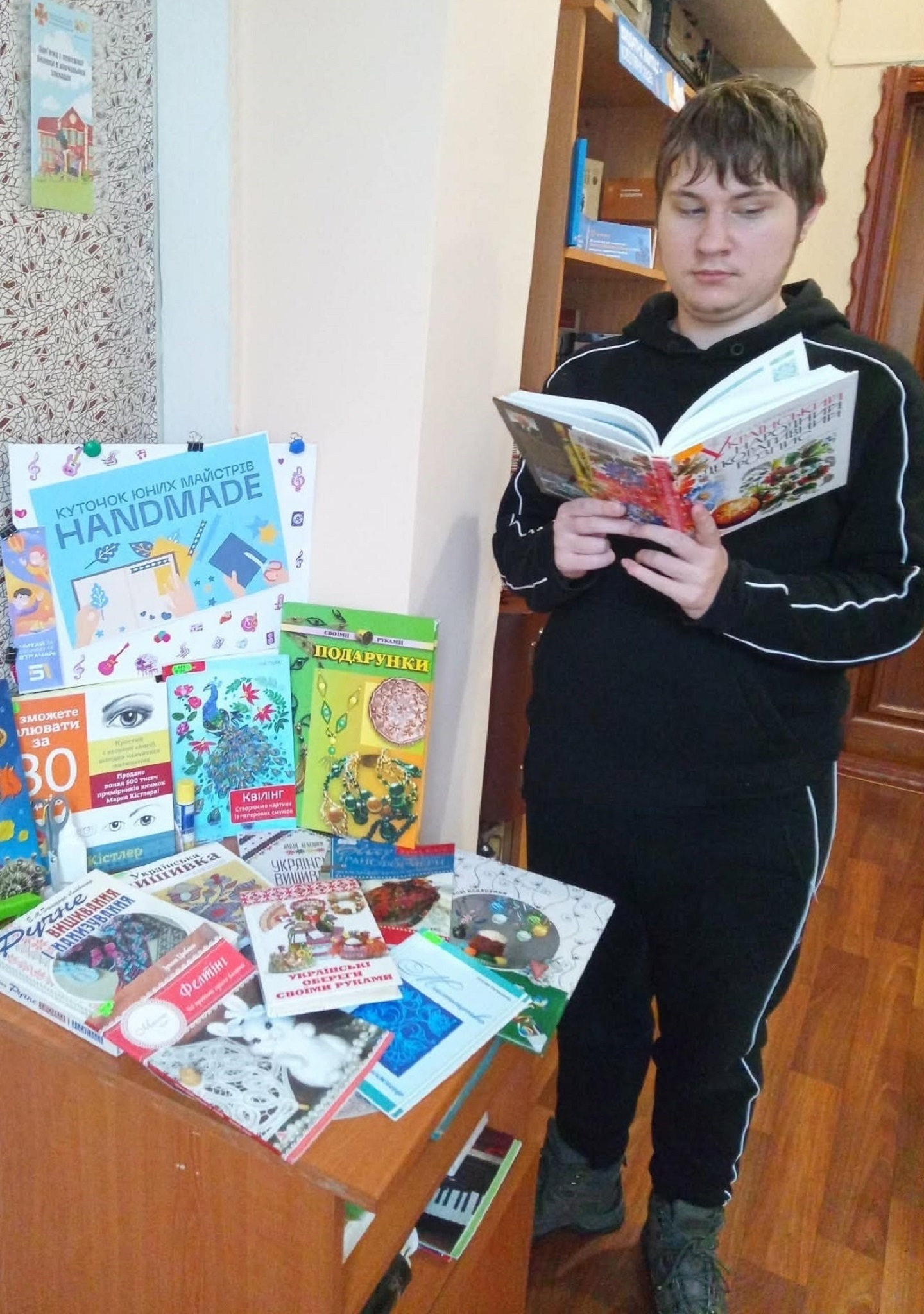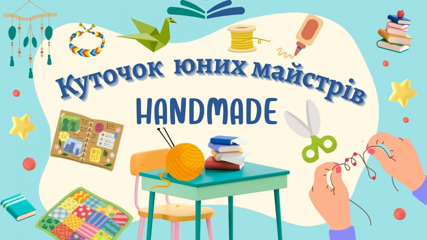 У секторі естетичного виховання юнацтва #твоєї бібліотеки, при майстерні «Art relax», облаштовано куточок юних майстрів «HANDMADE». Тут знаходяться книги з рукоділля, вишивки, бісероплетіння, в’язання гачком, витинанки, орігамі, малювання в різних техніках, виготовлення поробок і подарунків своїми руками та інше.