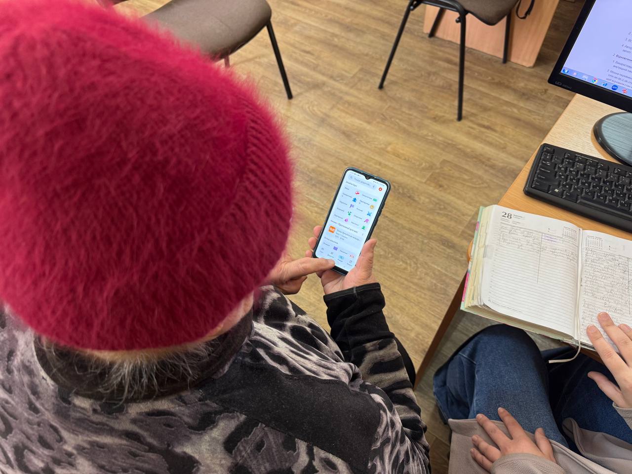 Спочатку пенсіонерка ознайомилася з додатком Play Маркет: дізналася про його основні функції і можливості, а також навчилася самостійно знаходити, завантажувати й встановлювати необхідні мобільні застосунки. Це дозволить їй у майбутньому впевнено користуватися новими сервісами без сторонньої допомоги.