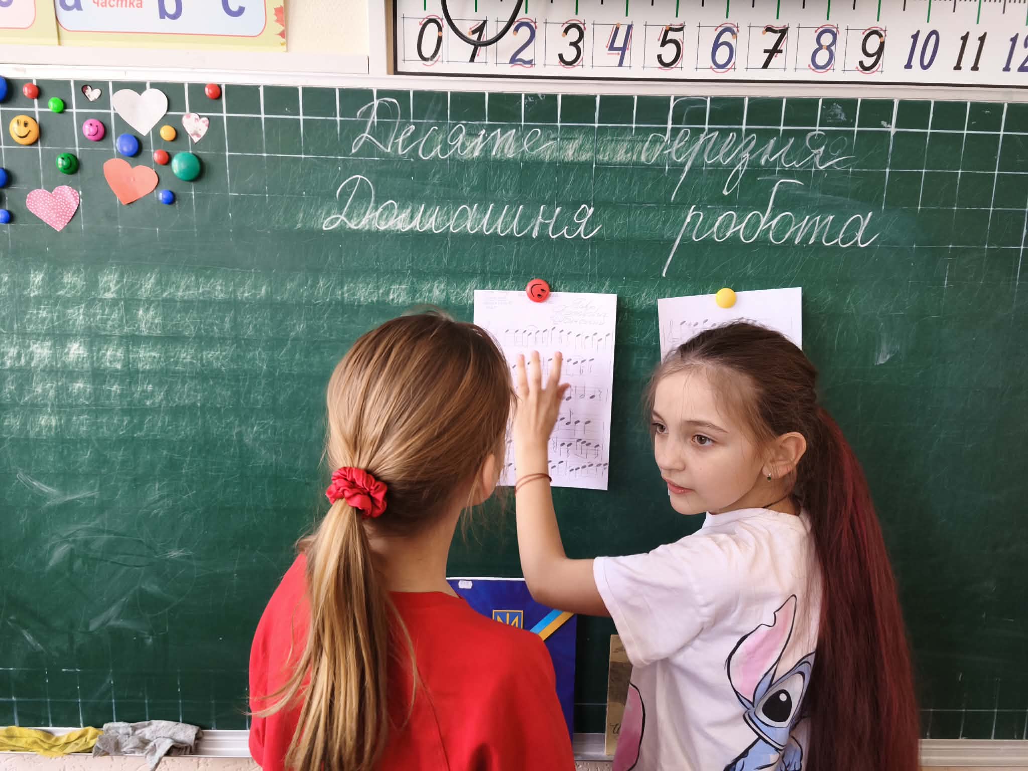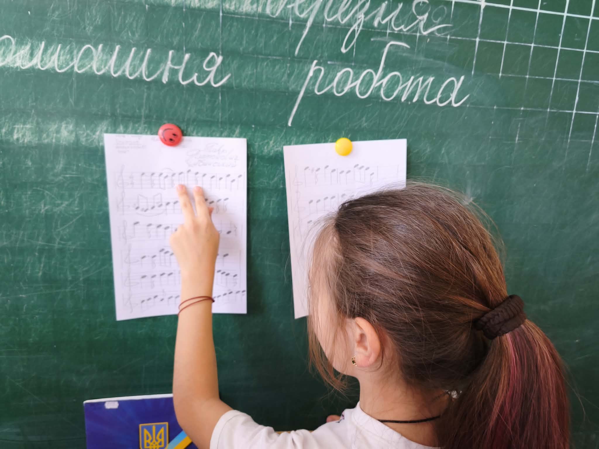 Під час музичної години «Камертон для кожного українського серця» діти знайомилися з нотами мелодії Гімну України, вчилися впізнавати їх у музичному записі, пробувати відтворювати ритм.
