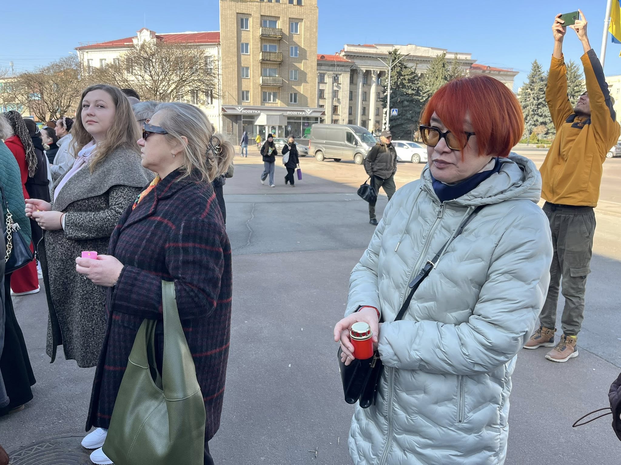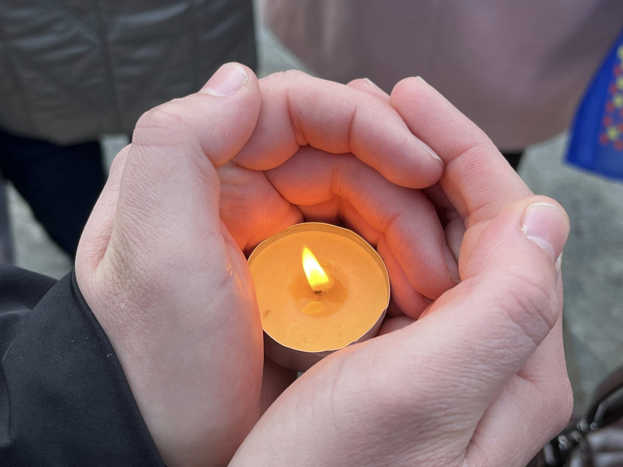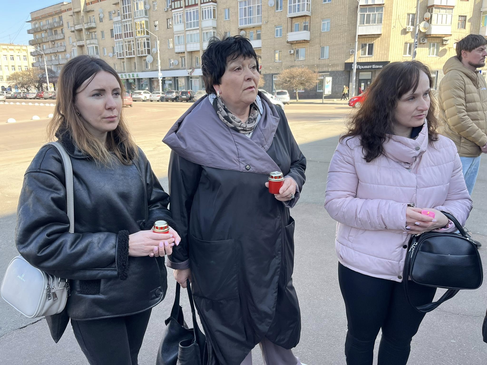 Біля входу до театру запалили лампадки пам’яті та хвилиною мовчання вшанували всіх, чиї життя забрала війна в Маріуполі.