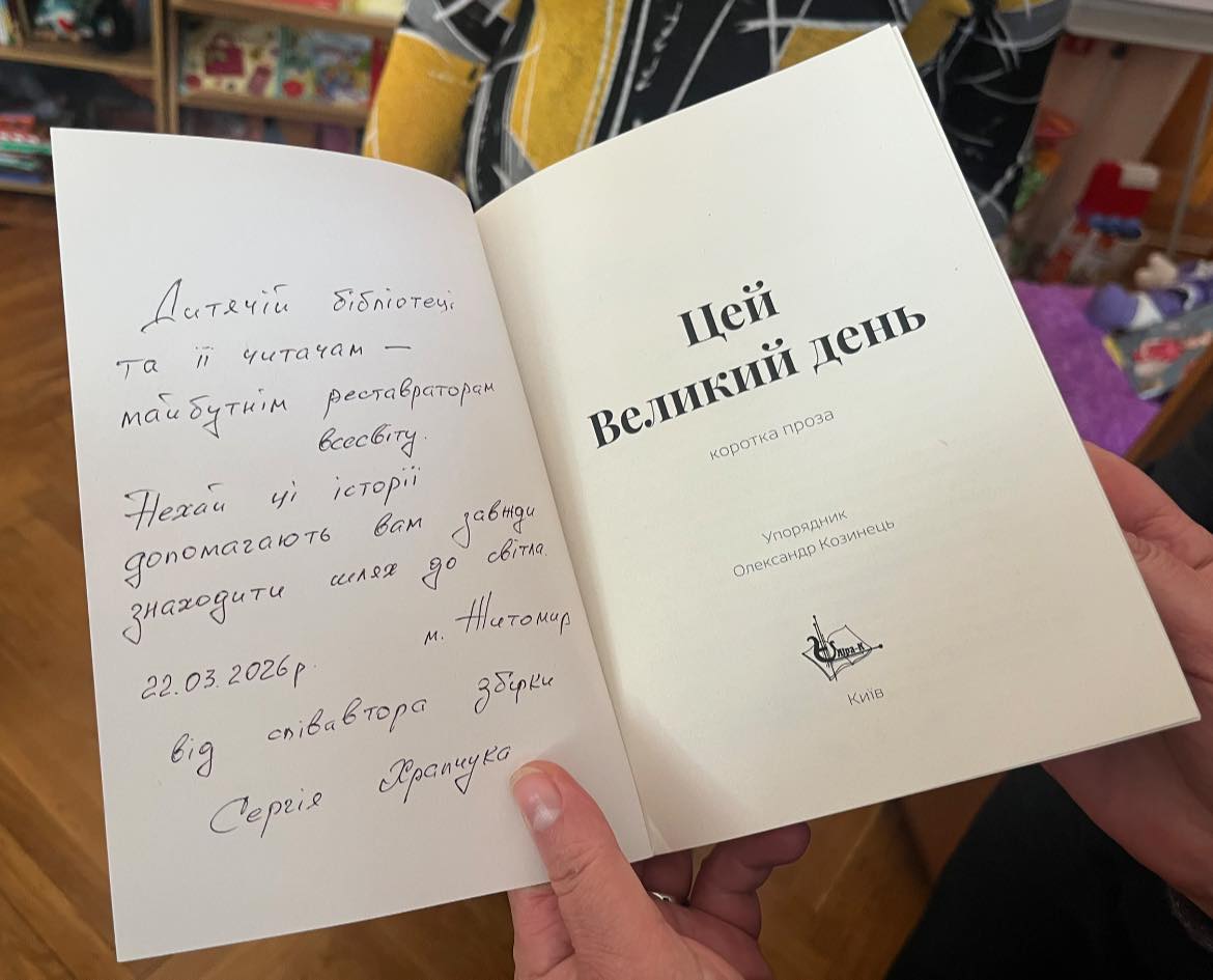 Наші фонди збагатилися особливим виданням — книгою «Цей Великий день». Щиро дякуємо пану Сергію Храпчуку, який особисто завітав до бібліотеки, щоб передати цей цінний подарунок для наших читачів.