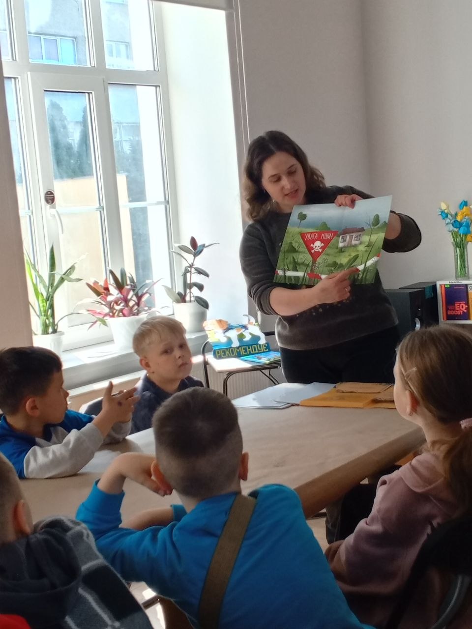 Діти із цікавістю взяли участь у картковій грі «Загадки на тему мінної безпеки». Загадки, розроблені ЮНІСЕФ Україна, допомагають дітям у легкій і зрозумілій формі засвоїти життєво важливі правила. Також учні познайомилися з книгою Зоряни Живки «Пес Патрон», де через цікаву історію ще раз нагадується про важливість бути обережним та відповідально ставитись до несподіваних знахідок.