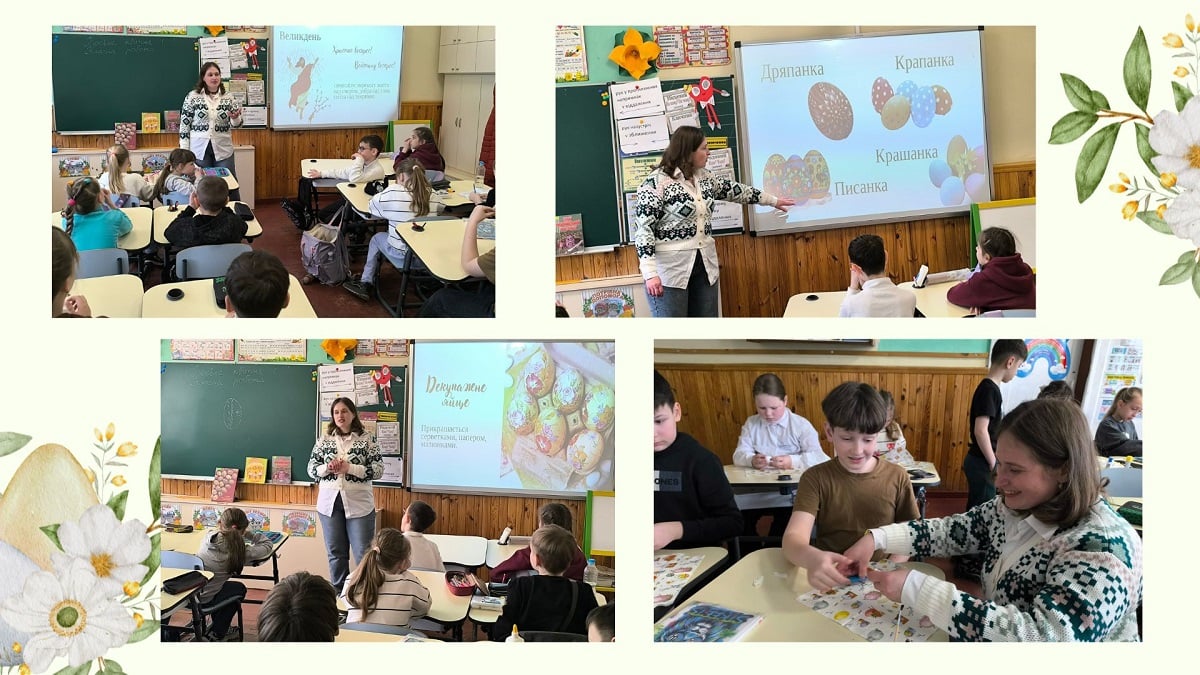 Під час спілкування діти дізналися про давні великодні традиції й символи свята. Особливу увагу приділили одному з головних символів Великодня — писанці. Учнів познайомили з різновидами писанок, їх символікою, значенням кольорів, орнаментів, а також техніками створення.