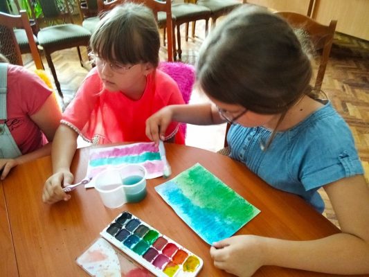 Сьогодні тінейджери з бібліотечного табору «Teen-club» перетворювали вірші Віри Куліш–Гальчинської з книги «Сонячна юшка» та