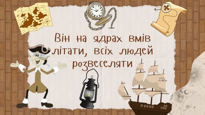 «Він на ядрах вмів літати, всіх людей розвеселяти» — таку назву мала театралізація-інтерпретація книги німецького бібліотекаря, письменника і науковця Рудольфа Еріха Распе «Неймовірні пригоди барона...
